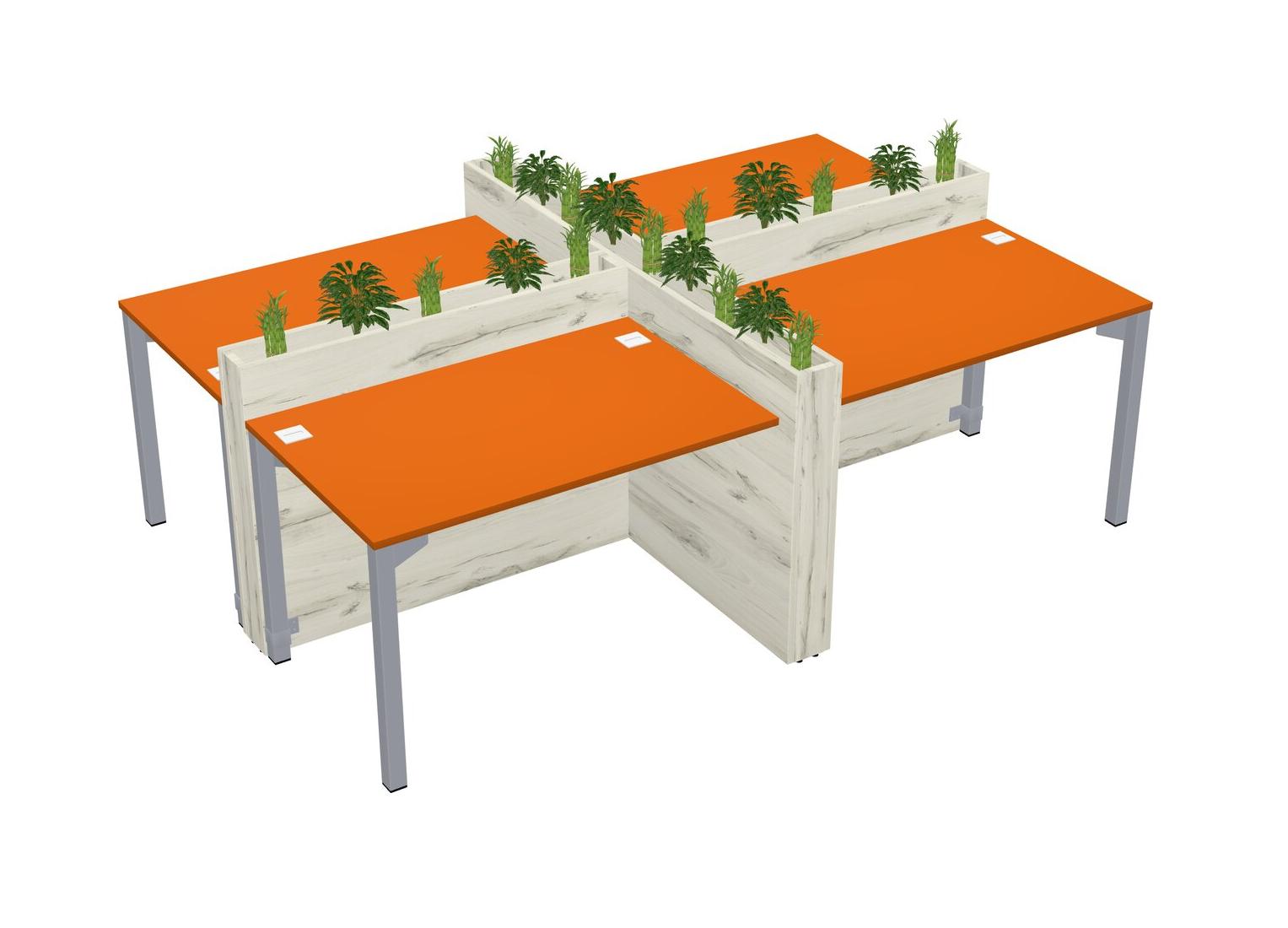 Orange Rectangular Shared Office Desk For 4 Persons Let Nature Help Flourish Your Productivity The Base Comes With An Adjustable Shelf To Provide Space For Pots (Pots & Plants Sold Separately)