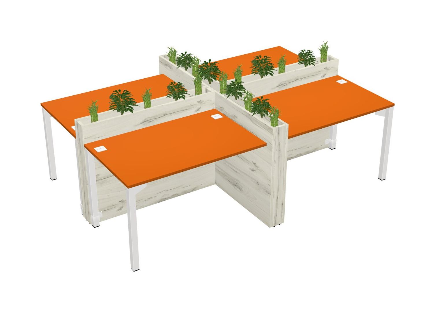 Orange Rectangular Shared Office Desk For 4 Persons Let Nature Help Flourish Your Productivity The Base Comes With An Adjustable Shelf To Provide Space For Pots (Pots & Plants Sold Separately)