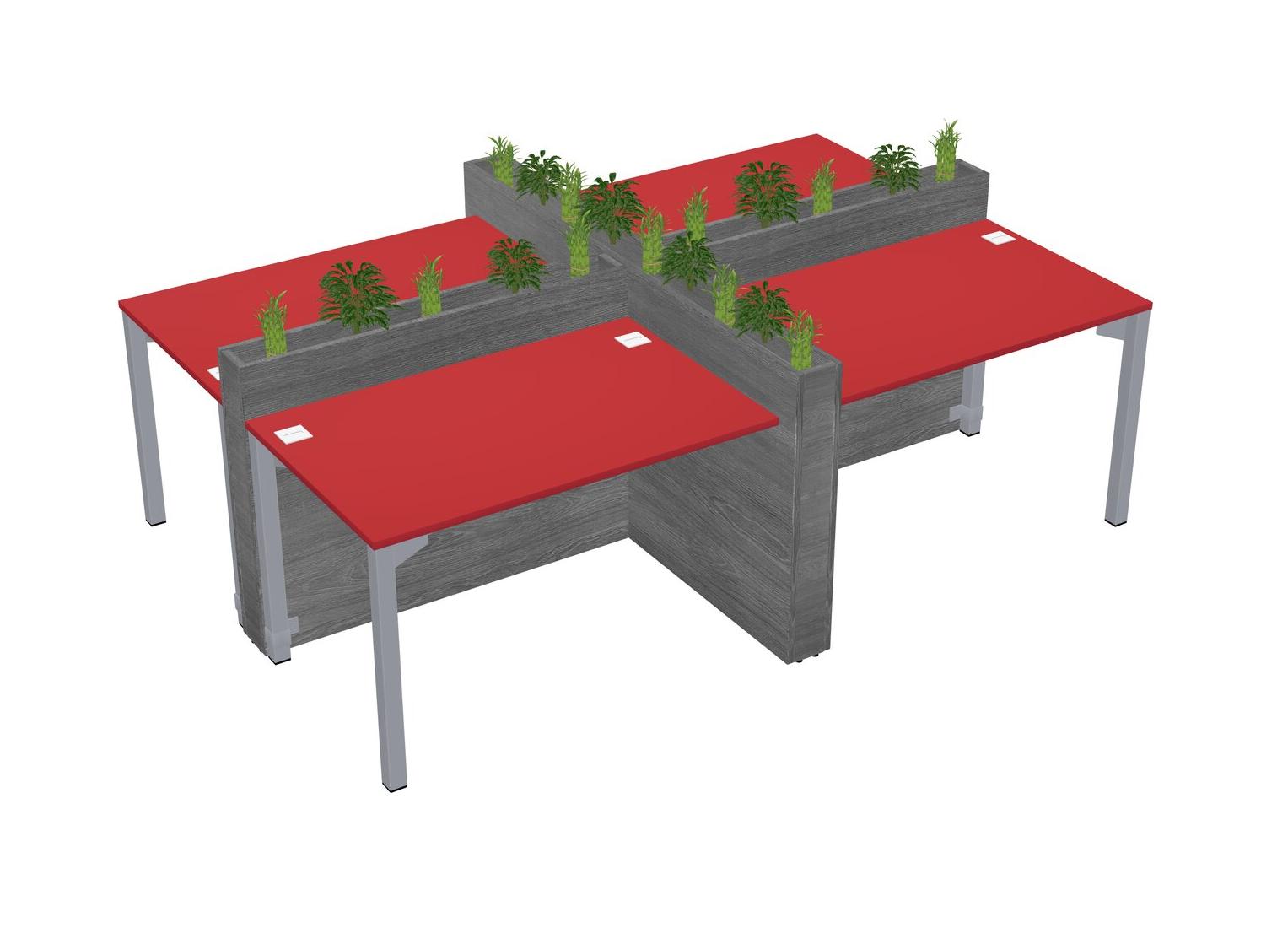 Prism Red Rectangular Shared Office Desk For 4 Persons Let Nature Help Flourish Your Productivity The Base Comes With An Adjustable Shelf To Provide Space For Pots (Pots & Plants Sold Separately)