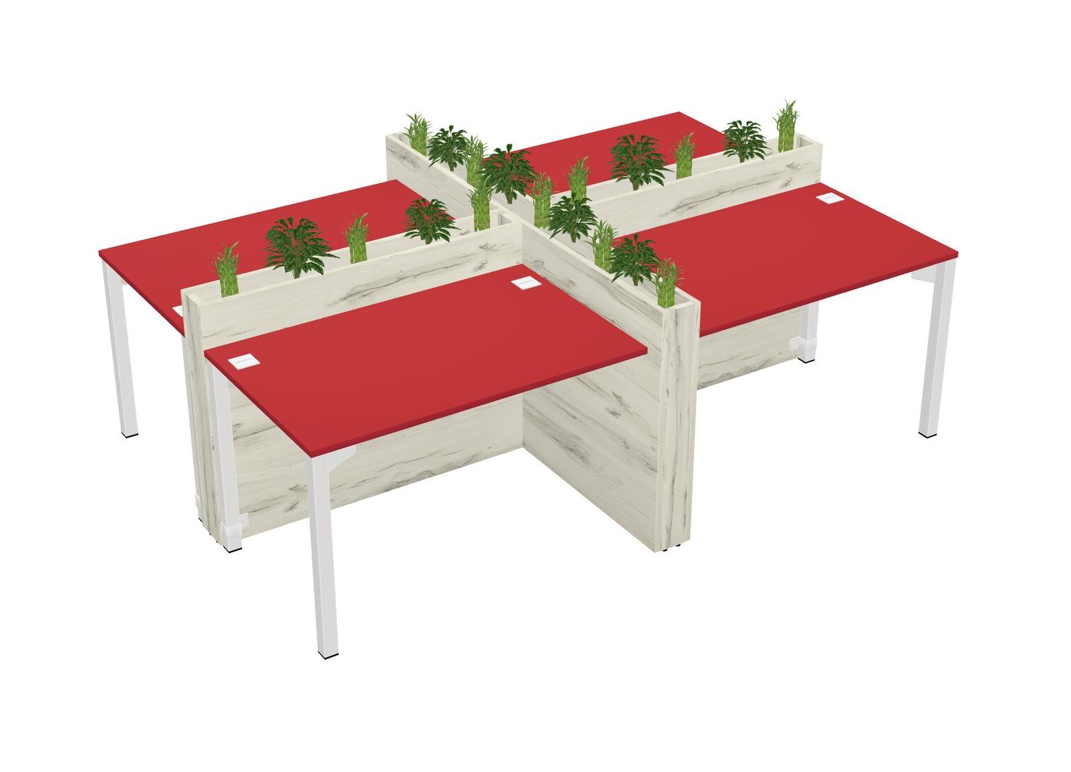 Prism Red Rectangular Shared Office Desk For 4 Persons Let Nature Help Flourish Your Productivity The Base Comes With An Adjustable Shelf To Provide Space For Pots (Pots & Plants Sold Separately)