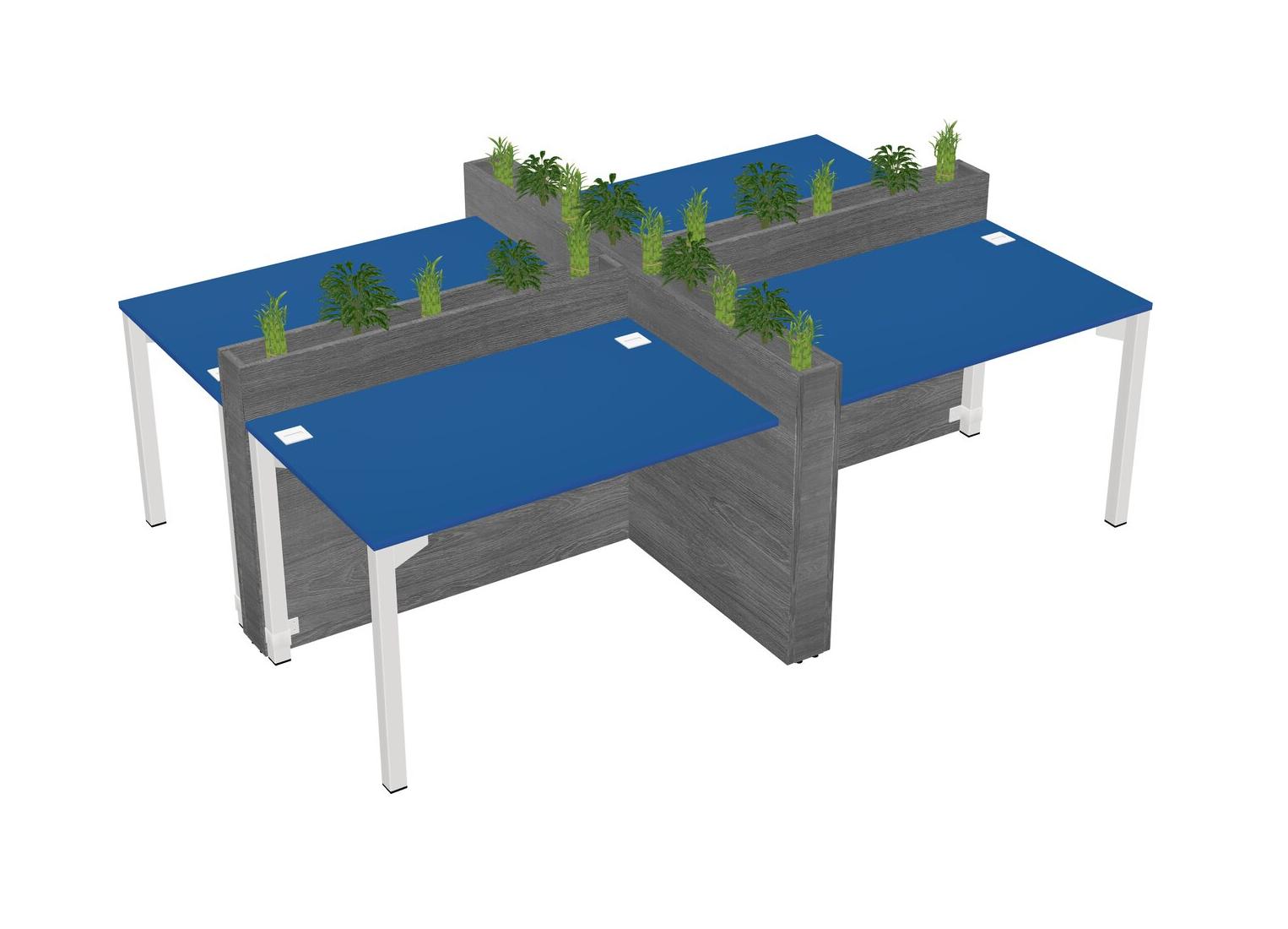 Prism Blue Rectangular Shared Office Desk For 4 Persons Let Nature Help Flourish Your Productivity The Base Comes With An Adjustable Shelf To Provide Space For Pots (Pots & Plants Sold Separately)