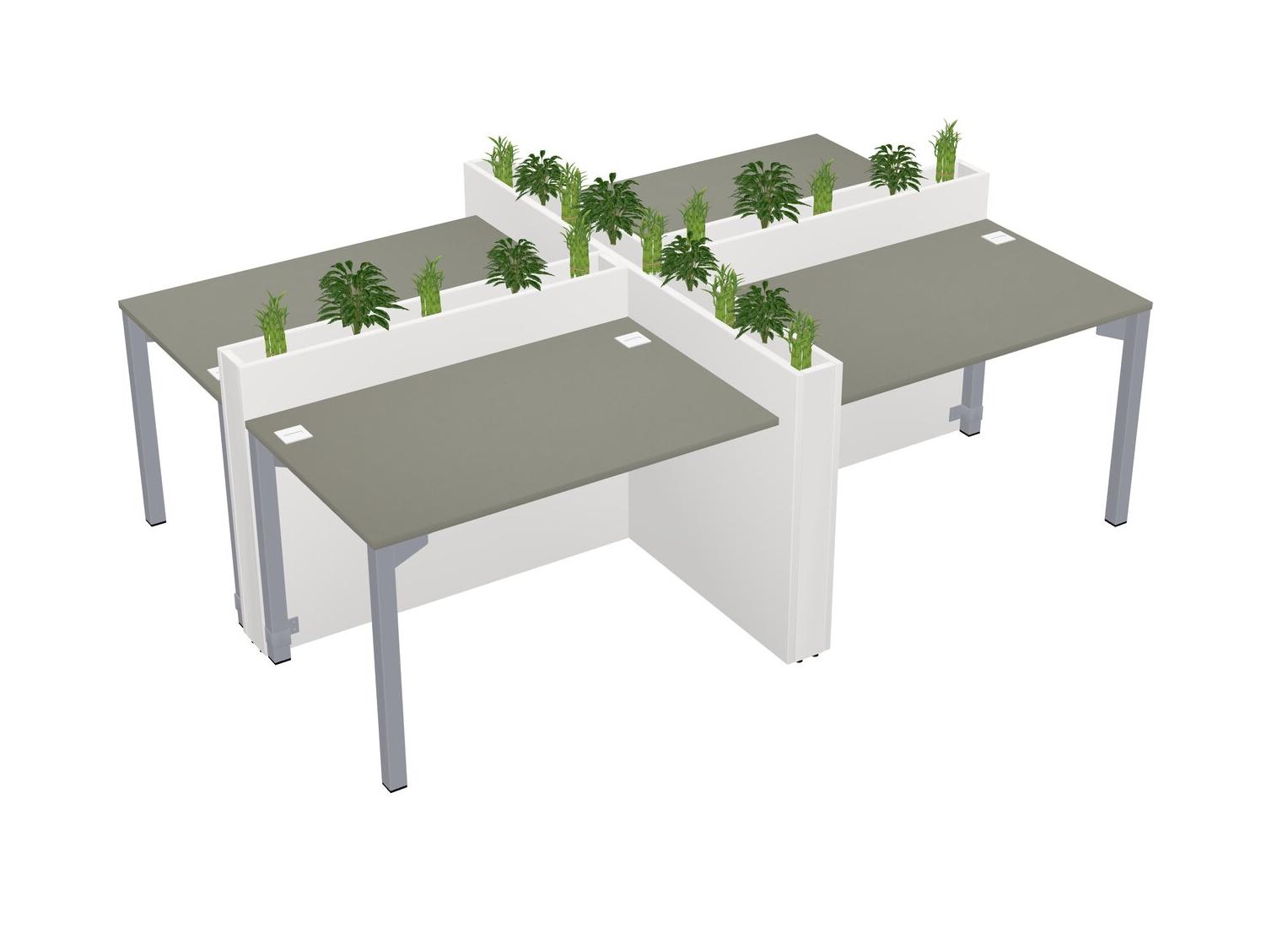 Grey Shadows Rectangular Shared Office Desk For 4 Persons Let Nature Help Flourish Your Productivity The Base Comes With An Adjustable Shelf To Provide Space For Pots (Pots & Plants Sold Separately)