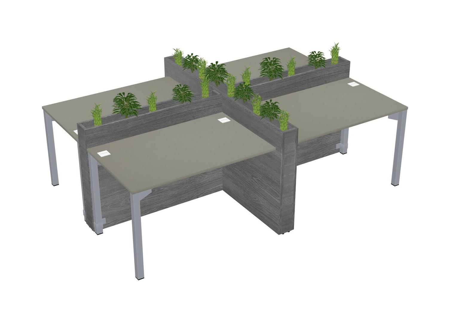 Grey Shadows Rectangular Shared Office Desk For 4 Persons Let Nature Help Flourish Your Productivity The Base Comes With An Adjustable Shelf To Provide Space For Pots (Pots & Plants Sold Separately)