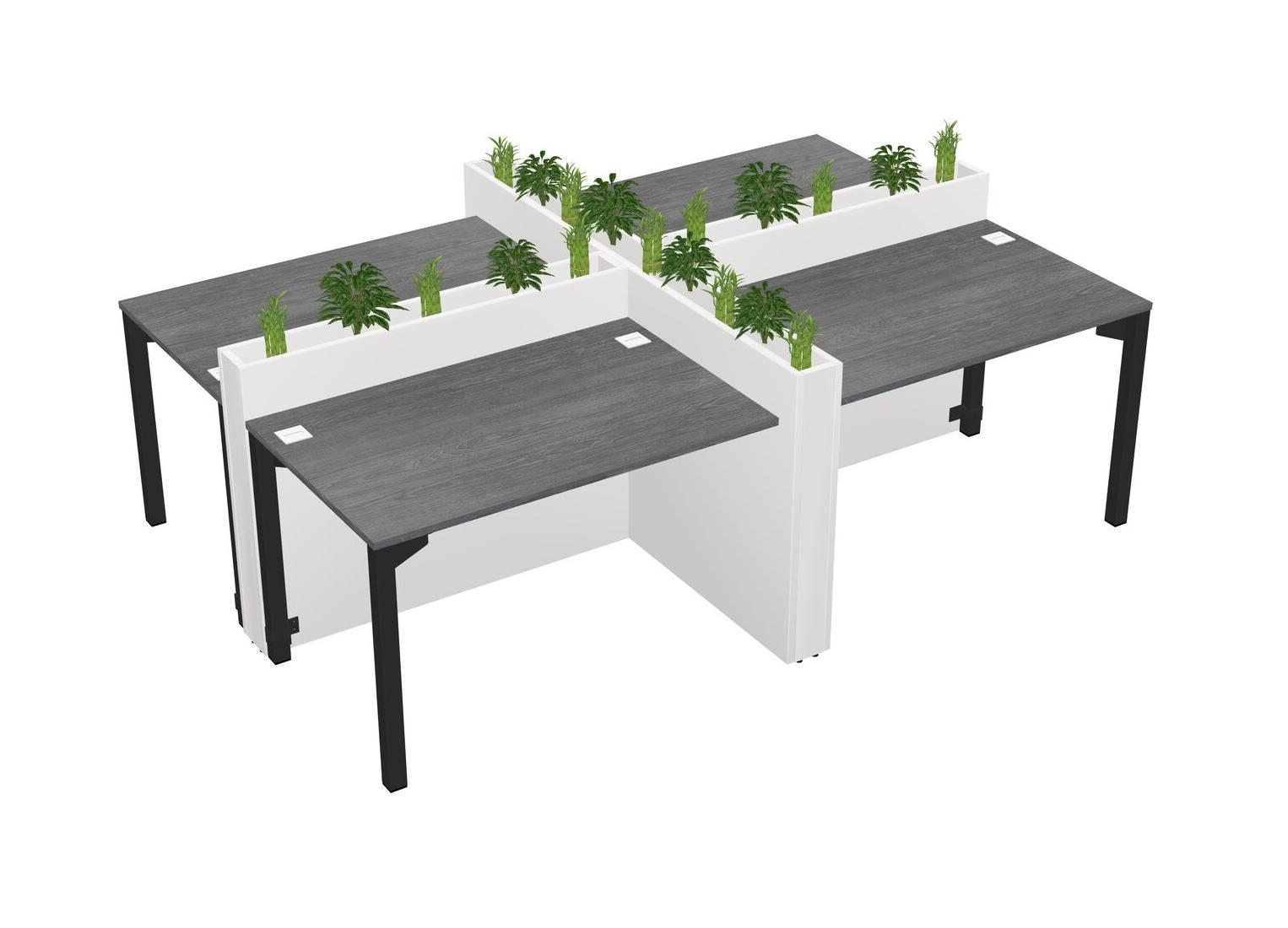 Grey Rectangular Shared Office Desk For 4 Persons Let Nature Help Flourish Your Productivity The Base Comes With An Adjustable Shelf To Provide Space For Pots (Pots & Plants Sold Separately)