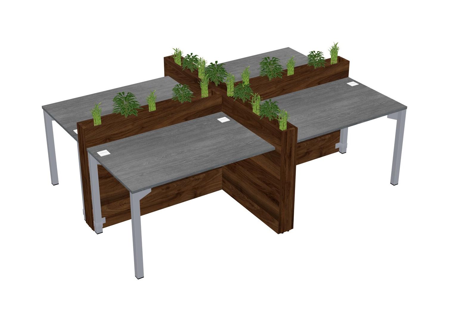 Grey Rectangular Shared Office Desk For 4 Persons Let Nature Help Flourish Your Productivity The Base Comes With An Adjustable Shelf To Provide Space For Pots (Pots & Plants Sold Separately)