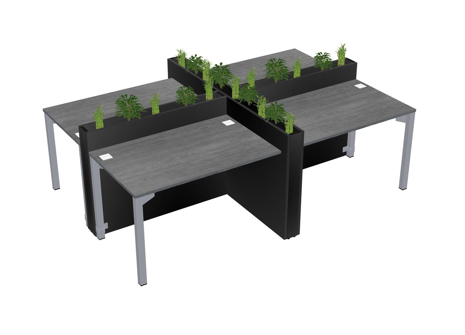Grey Rectangular Shared Office Desk For 4 Persons Let Nature Help Flourish Your Productivity The Base Comes With An Adjustable Shelf To Provide Space For Pots (Pots & Plants Sold Separately)
