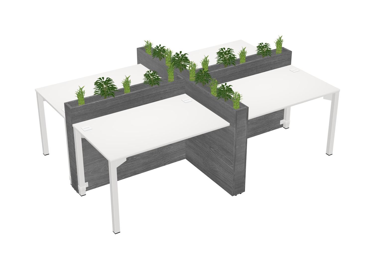 White Rectangular Shared Office Desk For 4 Persons Let Nature Help Flourish Your Productivity The Base Comes With An Adjustable Shelf To Provide Space For Pots (Pots & Plants Sold Separately)