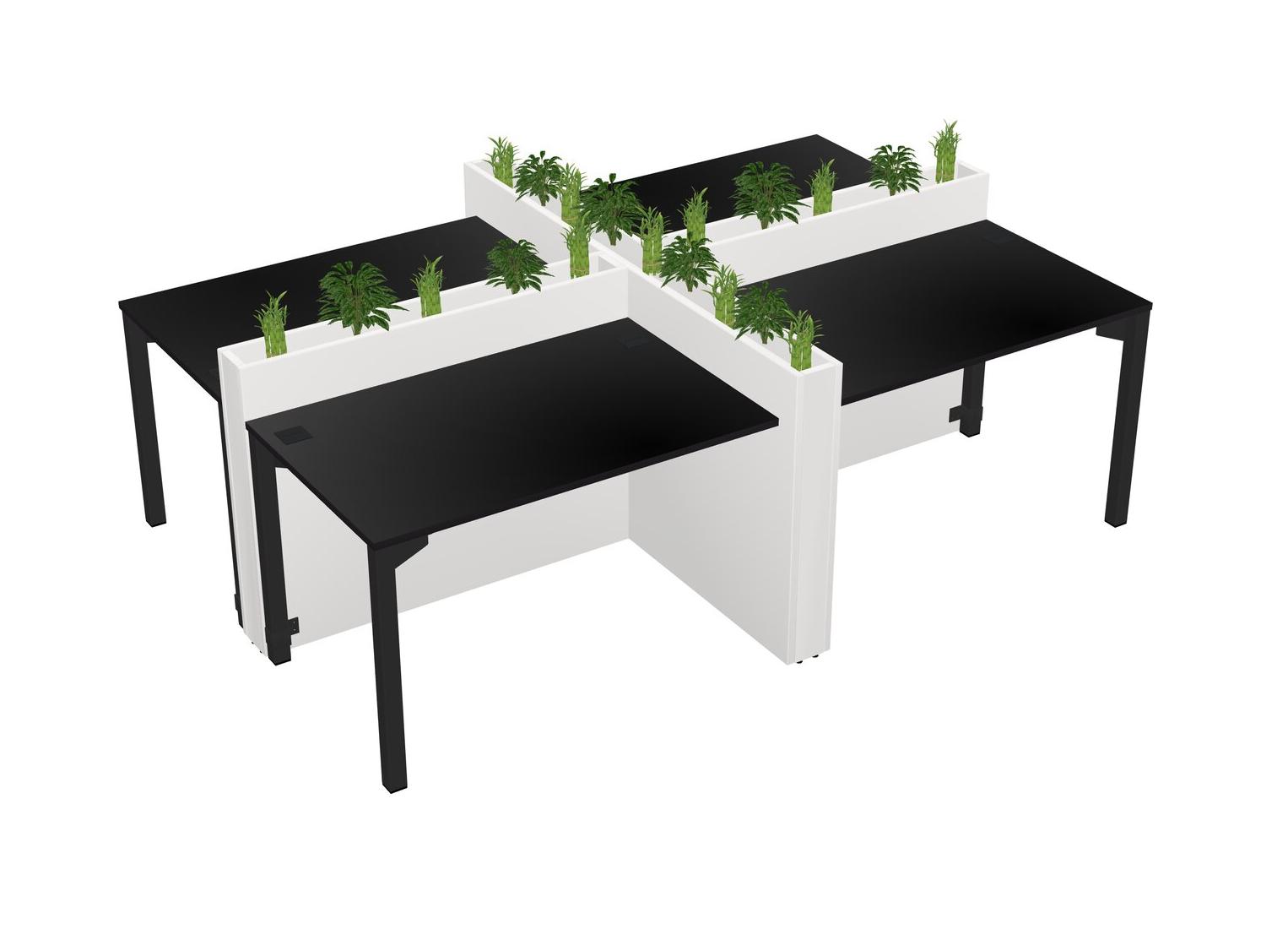 Black Rectangular Shared Office Desk For 4 Persons Let Nature Help Flourish Your Productivity The Base Comes With An Adjustable Shelf To Provide Space For Pots (Pots & Plants Sold Separately)