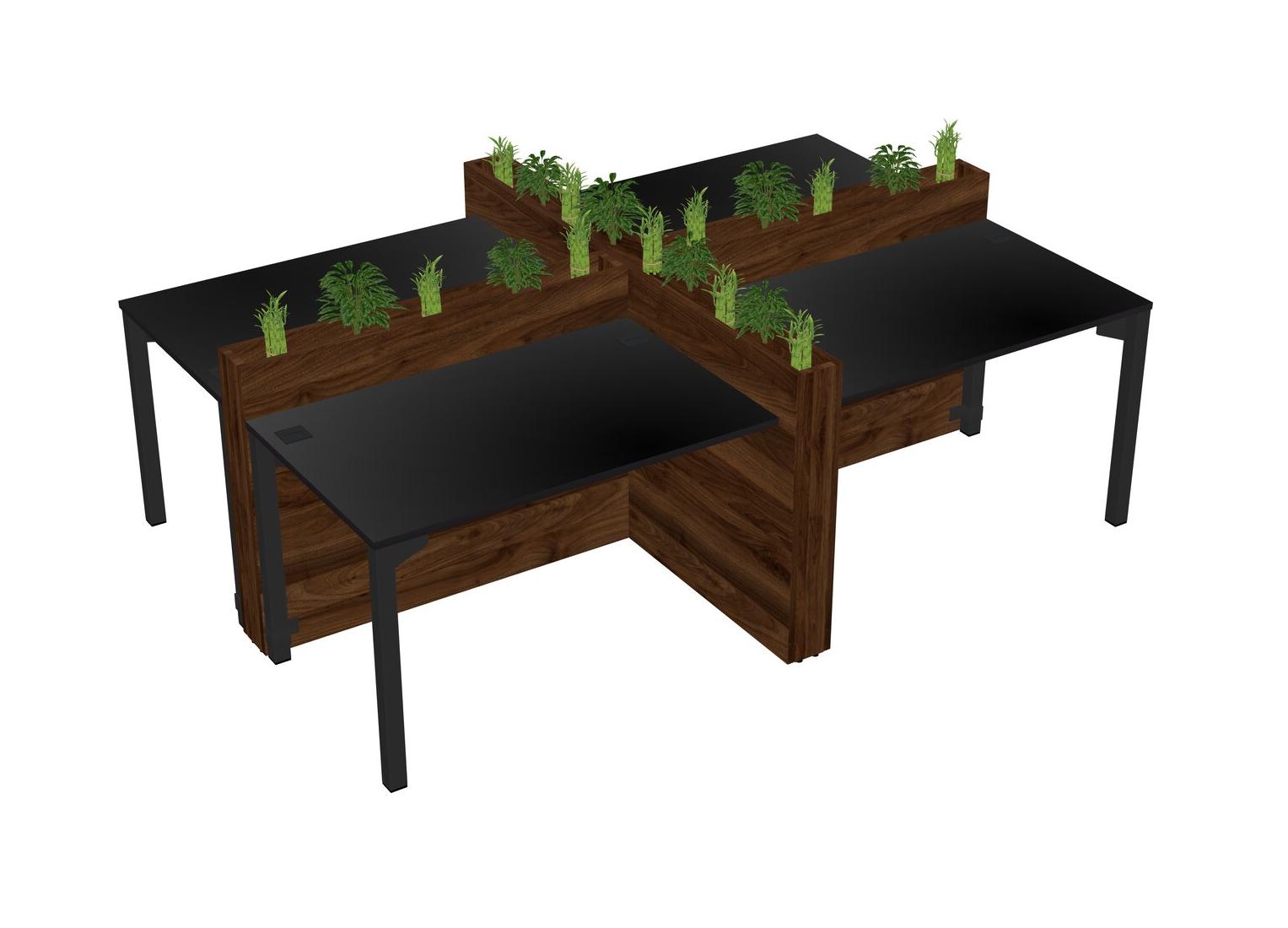 Black Rectangular Shared Office Desk For 4 Persons Let Nature Help Flourish Your Productivity The Base Comes With An Adjustable Shelf To Provide Space For Pots (Pots & Plants Sold Separately)