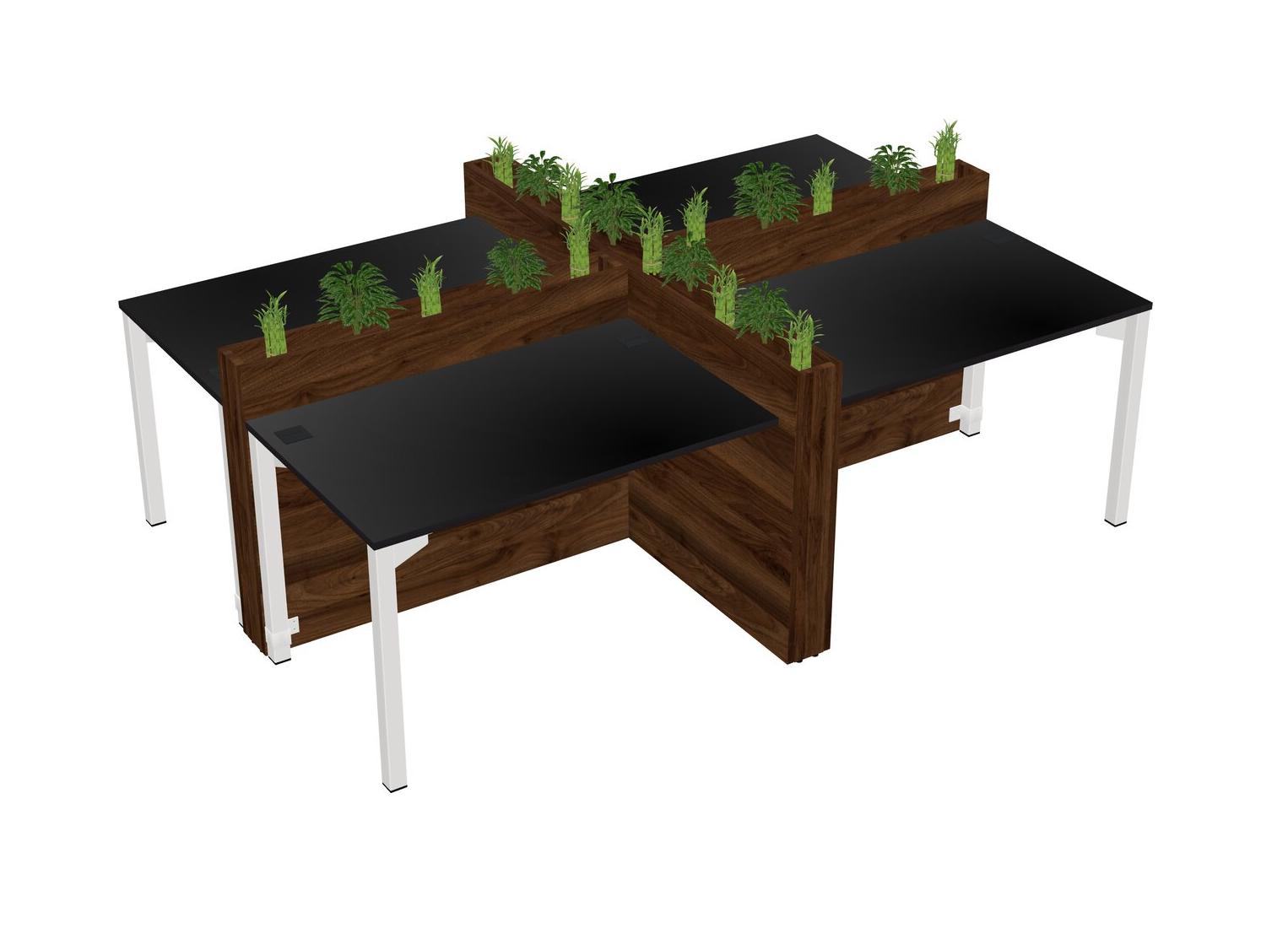 Black Rectangular Shared Office Desk For 4 Persons Let Nature Help Flourish Your Productivity The Base Comes With An Adjustable Shelf To Provide Space For Pots (Pots & Plants Sold Separately)