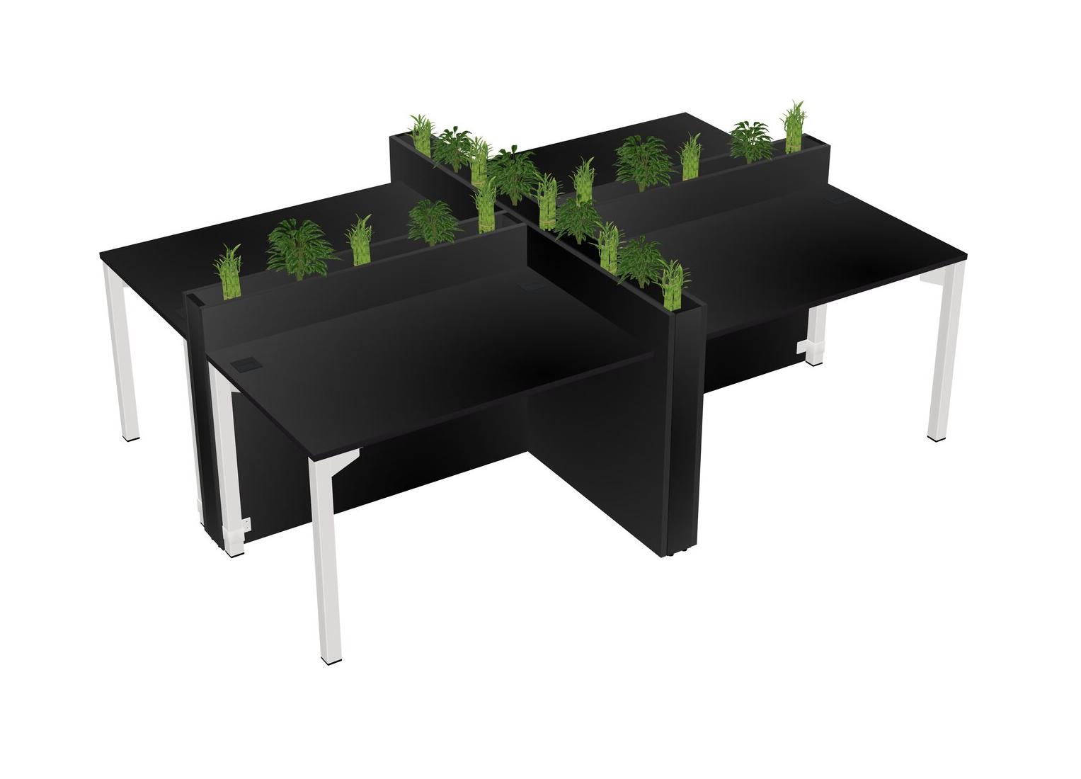 Black Rectangular Shared Office Desk For 4 Persons Let Nature Help Flourish Your Productivity The Base Comes With An Adjustable Shelf To Provide Space For Pots (Pots & Plants Sold Separately)