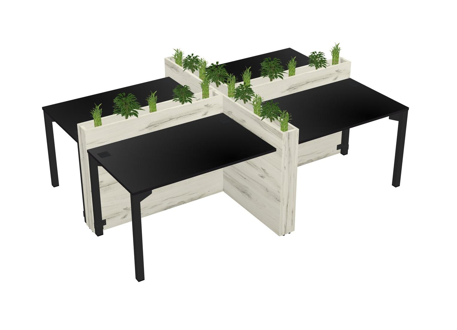 Black Rectangular Shared Office Desk For 4 Persons Let Nature Help Flourish Your Productivity The Base Comes With An Adjustable Shelf To Provide Space For Pots (Pots & Plants Sold Separately)