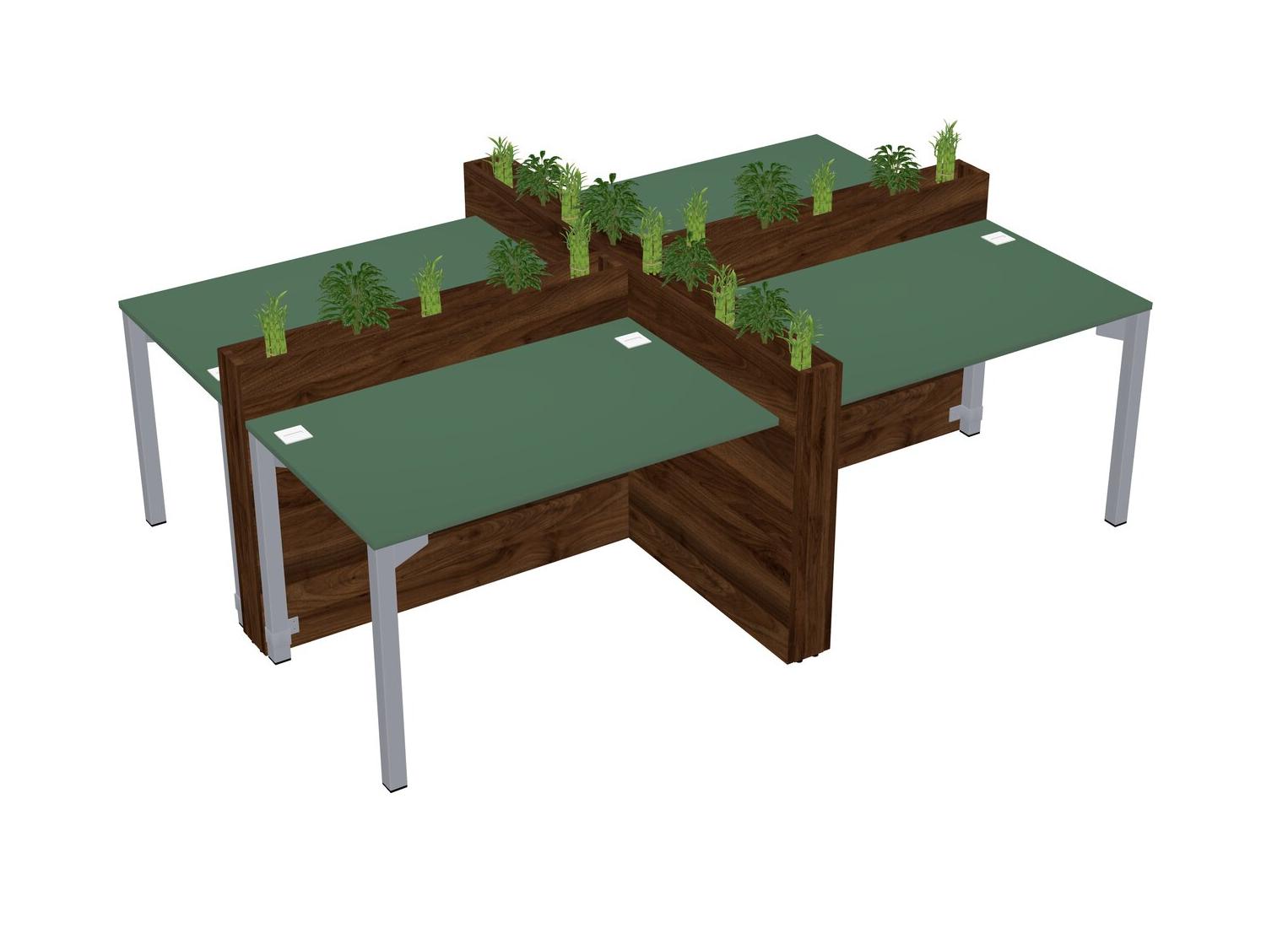 Green Rectangular Shared Office Desk For 4 Persons Let Nature Help Flourish Your Productivity The Base Comes With An Adjustable Shelf To Provide Space For Pots (Pots & Plants Sold Separately)