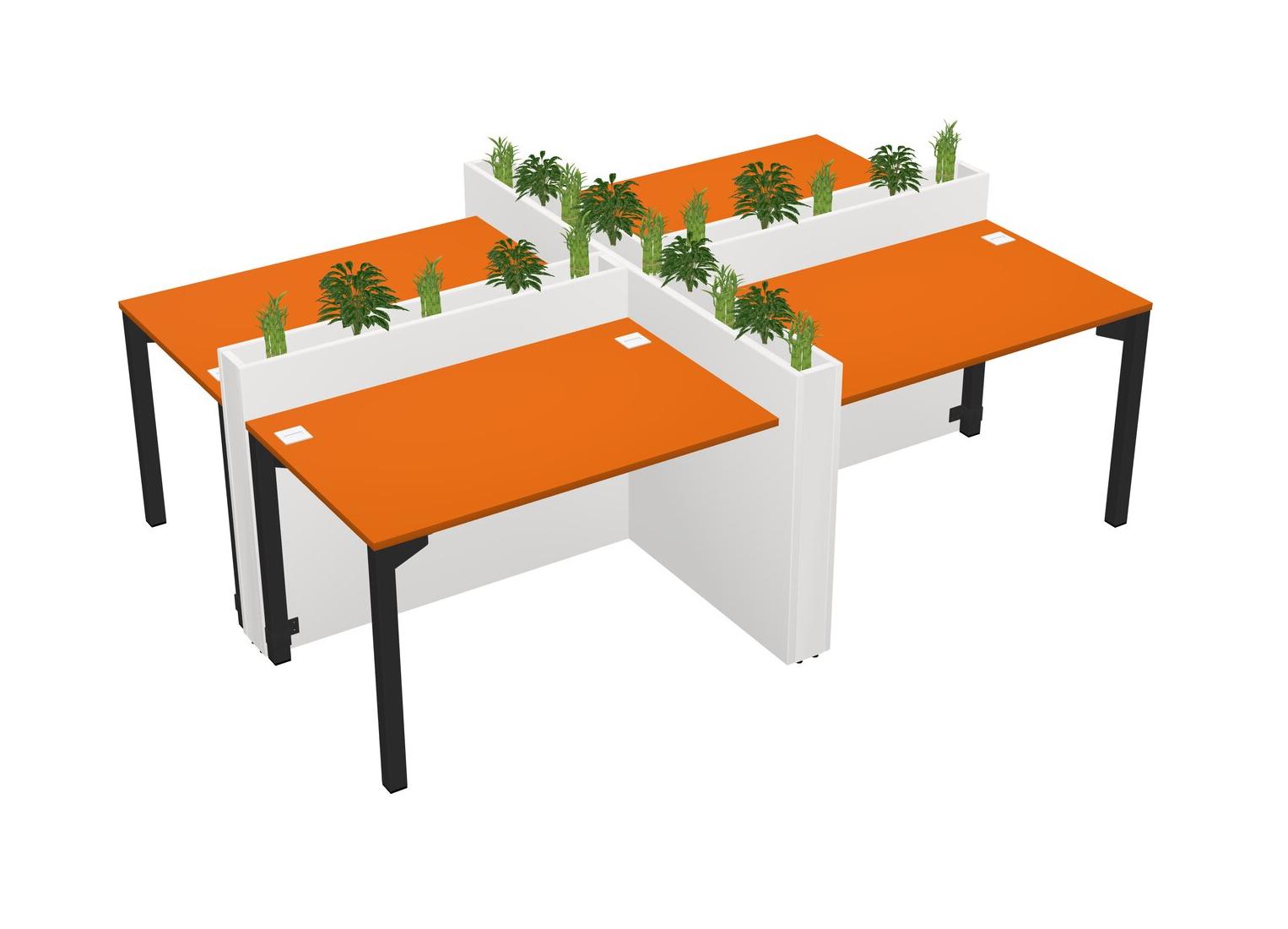 Orange Rectangular Shared Office Desk For 4 Persons Let Nature Help Flourish Your Productivity The Base Comes With An Adjustable Shelf To Provide Space For Pots (Pots & Plants Sold Separately)