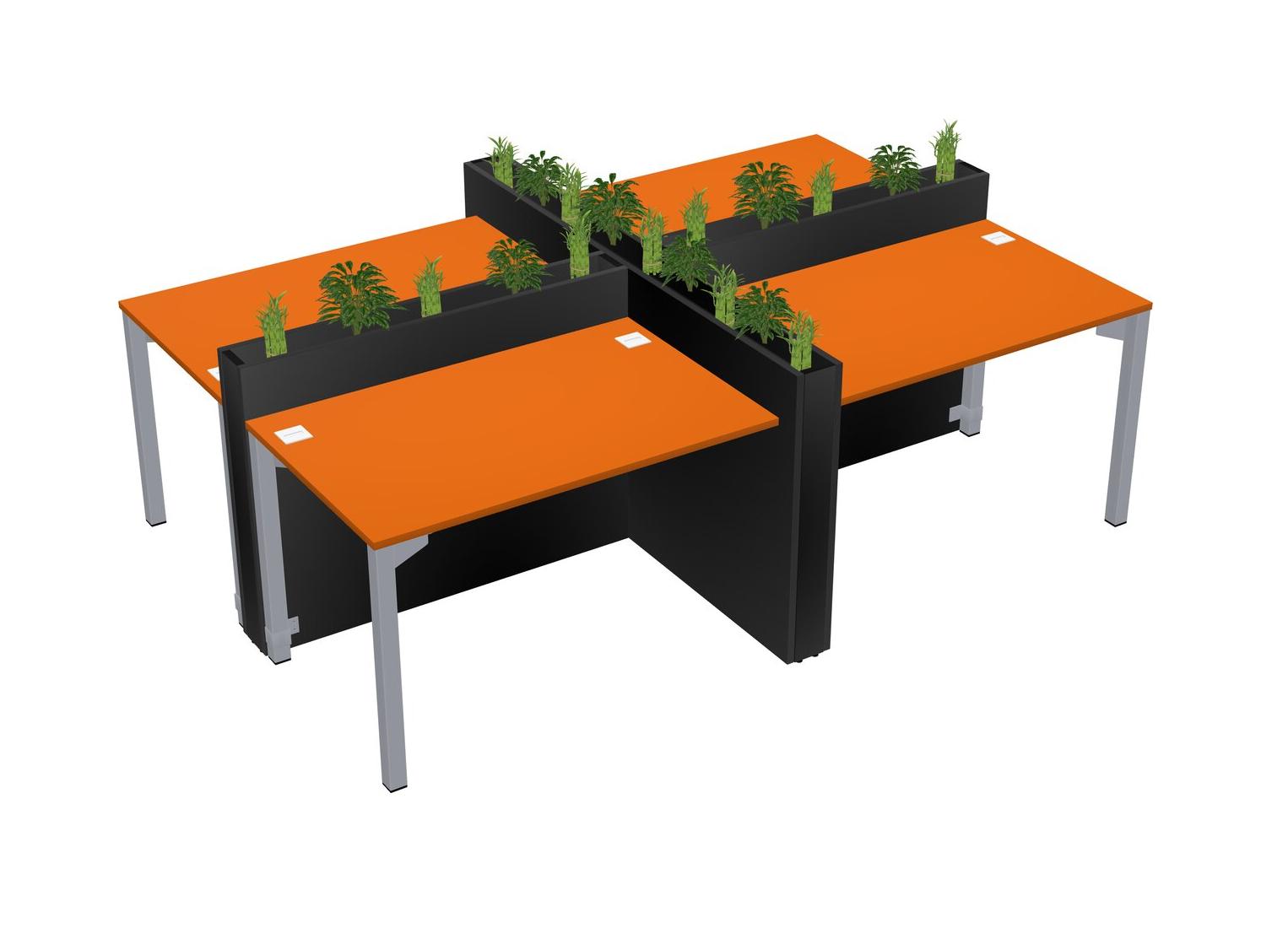 Orange Rectangular Shared Office Desk For 4 Persons Let Nature Help Flourish Your Productivity The Base Comes With An Adjustable Shelf To Provide Space For Pots (Pots & Plants Sold Separately)