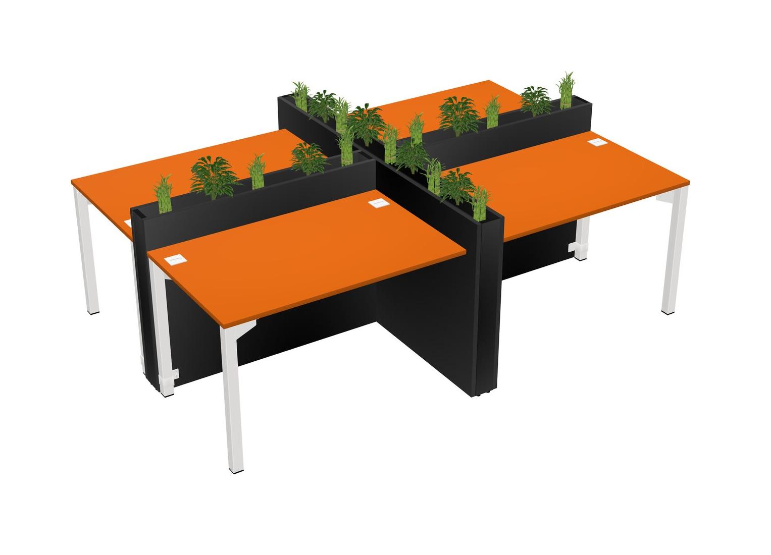 Orange Rectangular Shared Office Desk For 4 Persons Let Nature Help Flourish Your Productivity The Base Comes With An Adjustable Shelf To Provide Space For Pots (Pots & Plants Sold Separately)