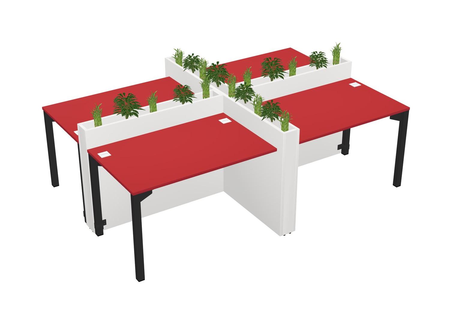 Prism Red Rectangular Shared Office Desk For 4 Persons Let Nature Help Flourish Your Productivity The Base Comes With An Adjustable Shelf To Provide Space For Pots (Pots & Plants Sold Separately)
