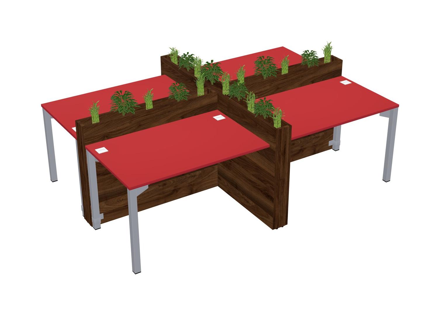 Prism Red Rectangular Shared Office Desk For 4 Persons Let Nature Help Flourish Your Productivity The Base Comes With An Adjustable Shelf To Provide Space For Pots (Pots & Plants Sold Separately)