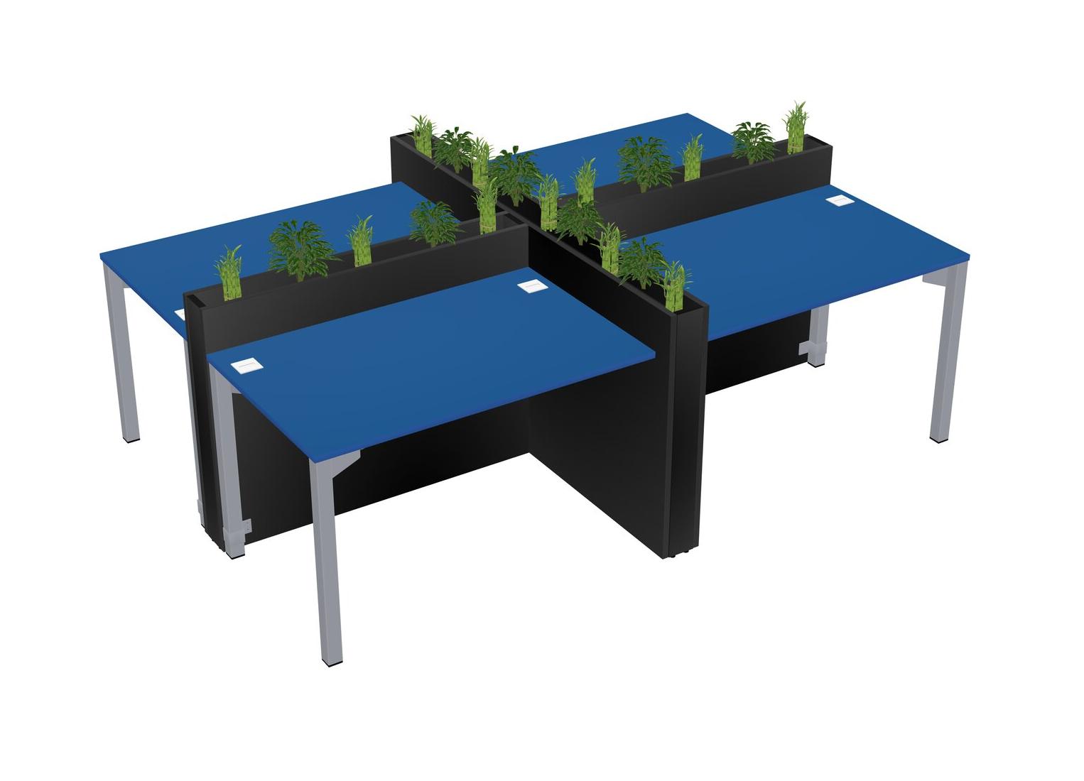 Prism Blue Rectangular Shared Office Desk For 4 Persons Let Nature Help Flourish Your Productivity The Base Comes With An Adjustable Shelf To Provide Space For Pots (Pots & Plants Sold Separately)