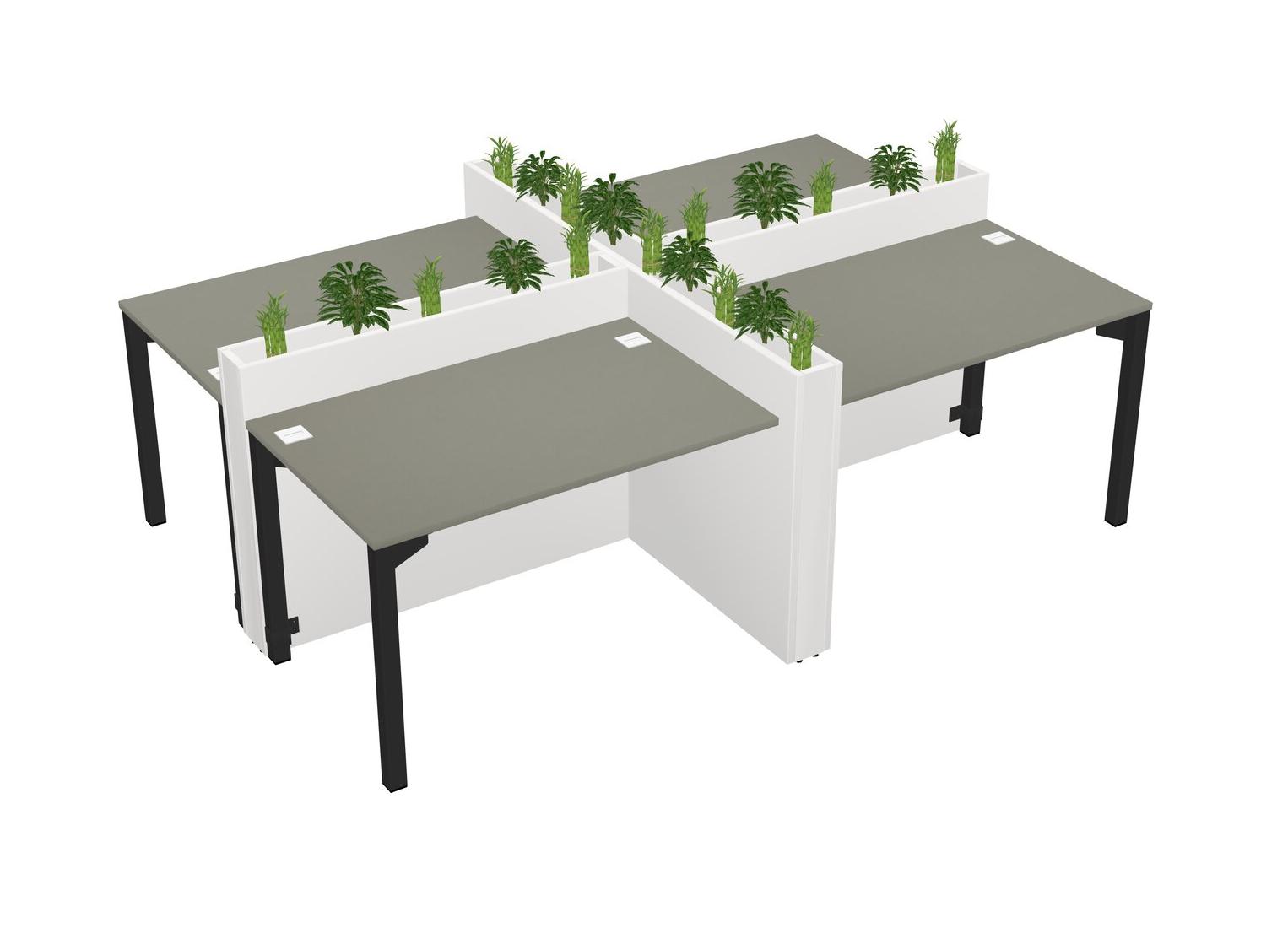 Grey Shadows Rectangular Shared Office Desk For 4 Persons Let Nature Help Flourish Your Productivity The Base Comes With An Adjustable Shelf To Provide Space For Pots (Pots & Plants Sold Separately)