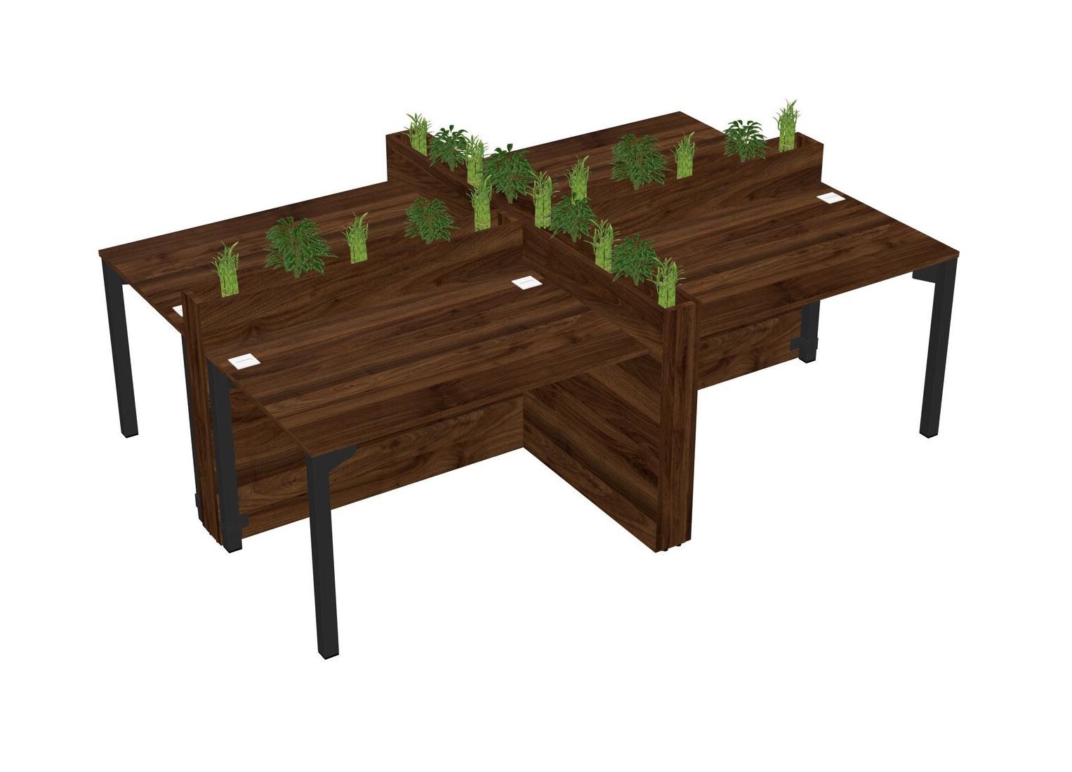 Columbia Walnut Rectangular Shared Office Desk For 4 Persons Let Nature Help Flourish Your Productivity The Base Comes With An Adjustable Shelf To Provide Space For Pots (Pots & Plants Sold Separately)