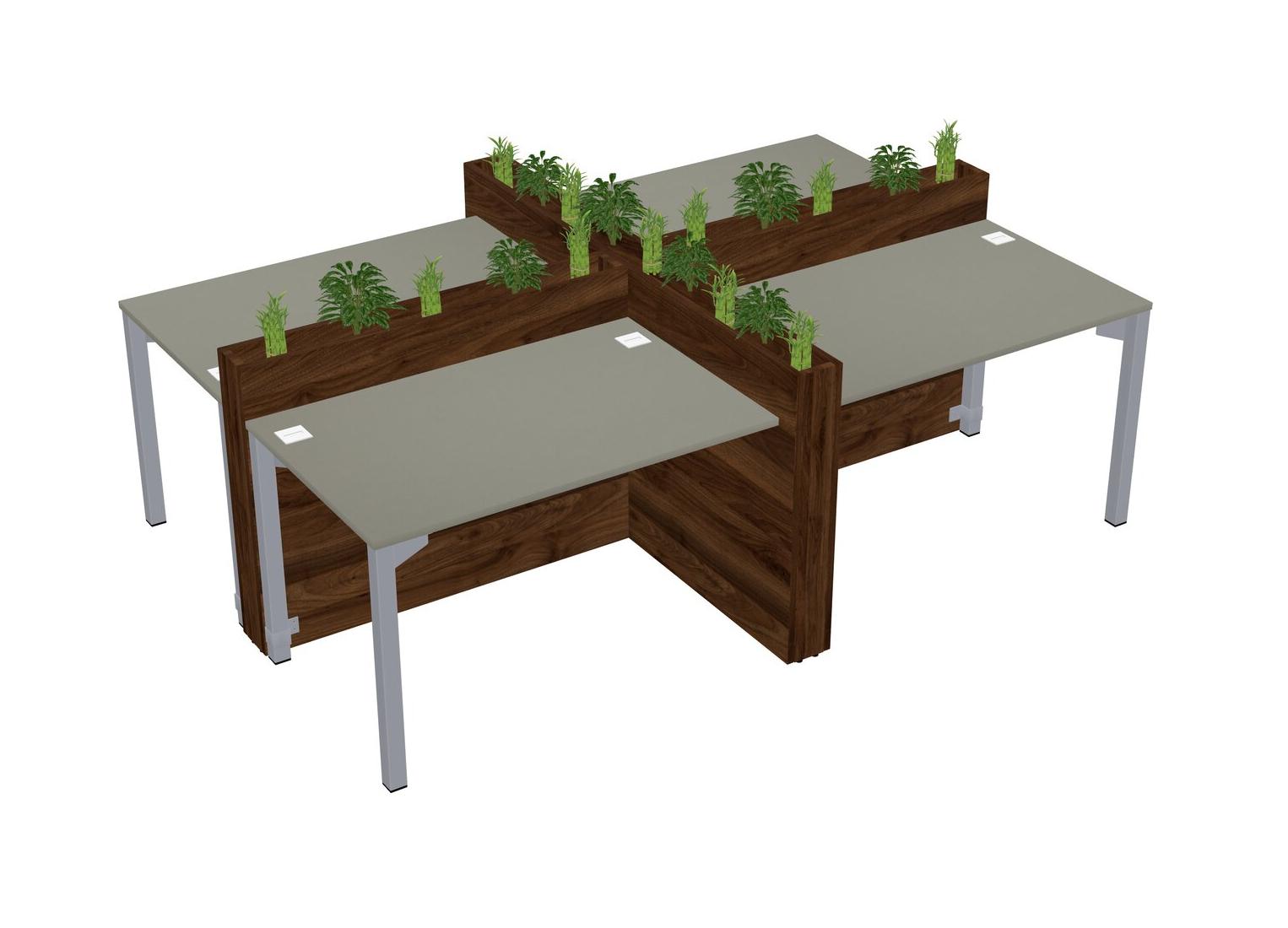 Grey Shadows Rectangular Shared Office Desk For 4 Persons Let Nature Help Flourish Your Productivity The Base Comes With An Adjustable Shelf To Provide Space For Pots (Pots & Plants Sold Separately)
