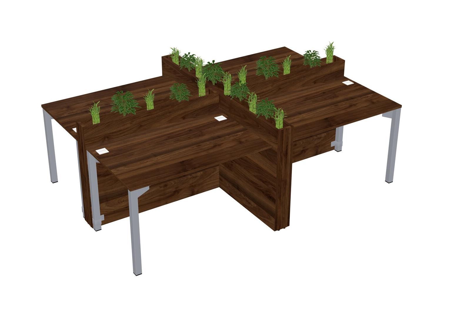 Columbia Walnut Rectangular Shared Office Desk For 4 Persons Let Nature Help Flourish Your Productivity The Base Comes With An Adjustable Shelf To Provide Space For Pots (Pots & Plants Sold Separately)