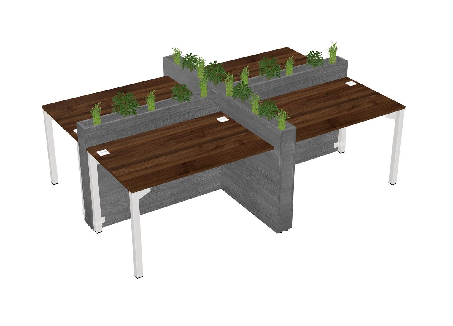 Columbia Walnut Rectangular Shared Office Desk For 4 Persons Let Nature Help Flourish Your Productivity The Base Comes With An Adjustable Shelf To Provide Space For Pots (Pots & Plants Sold Separately)