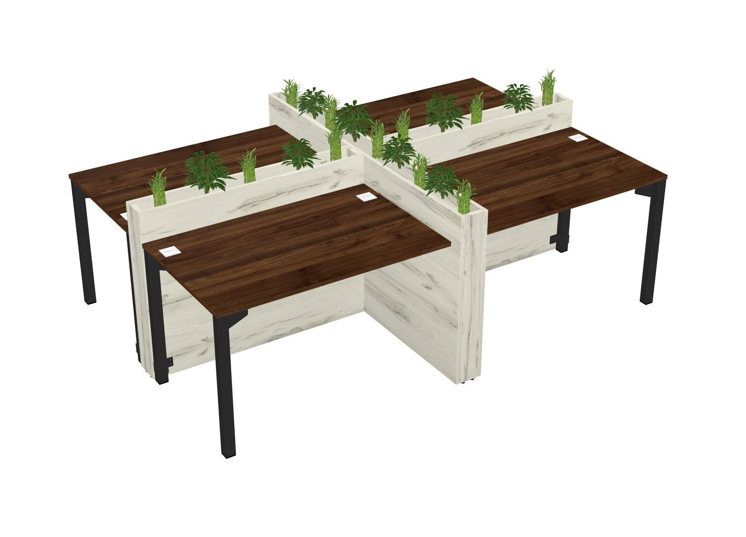 Columbia Walnut Rectangular Shared Office Desk For 4 Persons Let Nature Help Flourish Your Productivity The Base Comes With An Adjustable Shelf To Provide Space For Pots (Pots & Plants Sold Separately)