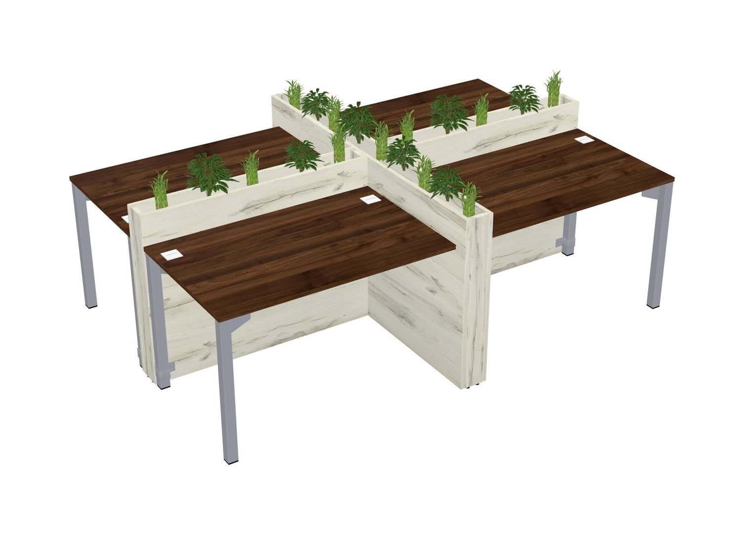 Columbia Walnut Rectangular Shared Office Desk For 4 Persons Let Nature Help Flourish Your Productivity The Base Comes With An Adjustable Shelf To Provide Space For Pots (Pots & Plants Sold Separately)