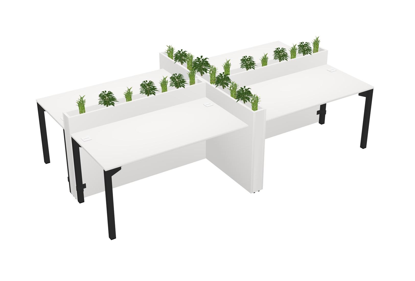 White Rectangular Shared Office Desk For 4 Persons Let Nature Help Flourish Your Productivity The Base Comes With An Adjustable Shelf To Provide Space For Pots (Pots & Plants Sold Separately)