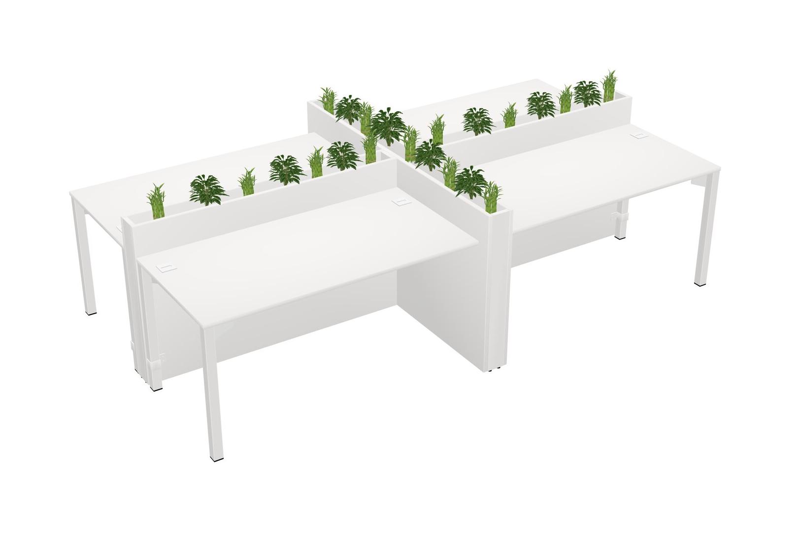 White Rectangular Shared Office Desk For 4 Persons Let Nature Help Flourish Your Productivity The Base Comes With An Adjustable Shelf To Provide Space For Pots (Pots & Plants Sold Separately)