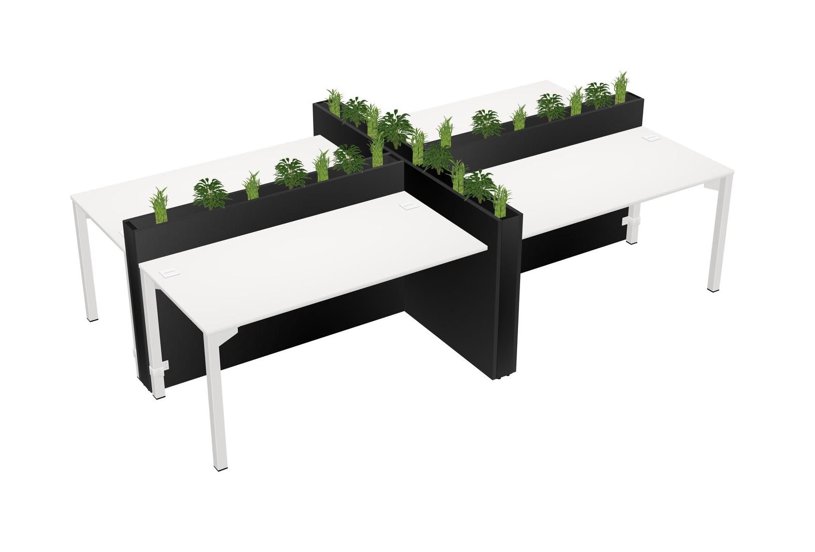 White Rectangular Shared Office Desk For 4 Persons Let Nature Help Flourish Your Productivity The Base Comes With An Adjustable Shelf To Provide Space For Pots (Pots & Plants Sold Separately)