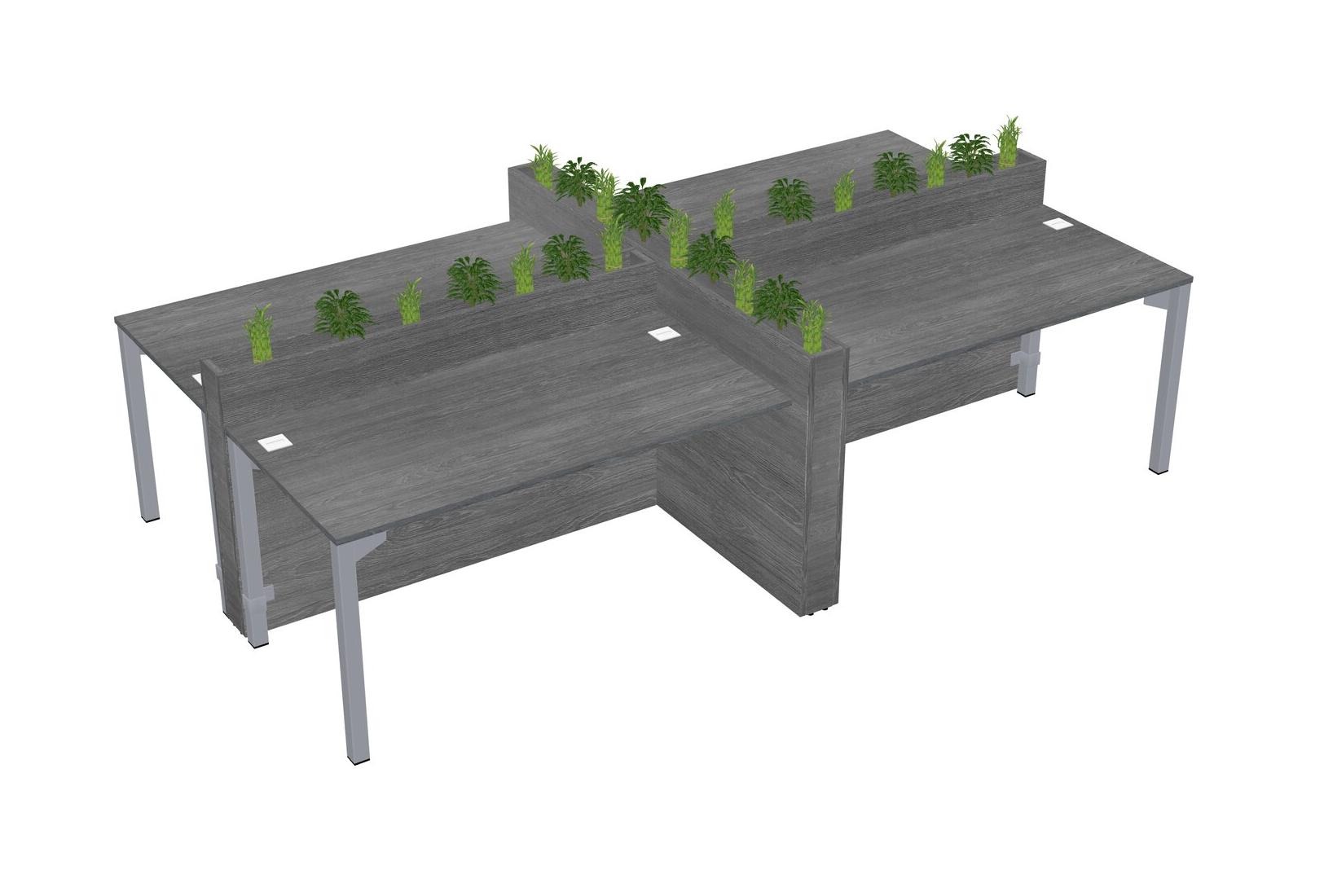 Grey Rectangular Shared Office Desk For 4 Persons Let Nature Help Flourish Your Productivity The Base Comes With An Adjustable Shelf To Provide Space For Pots (Pots & Plants Sold Separately)