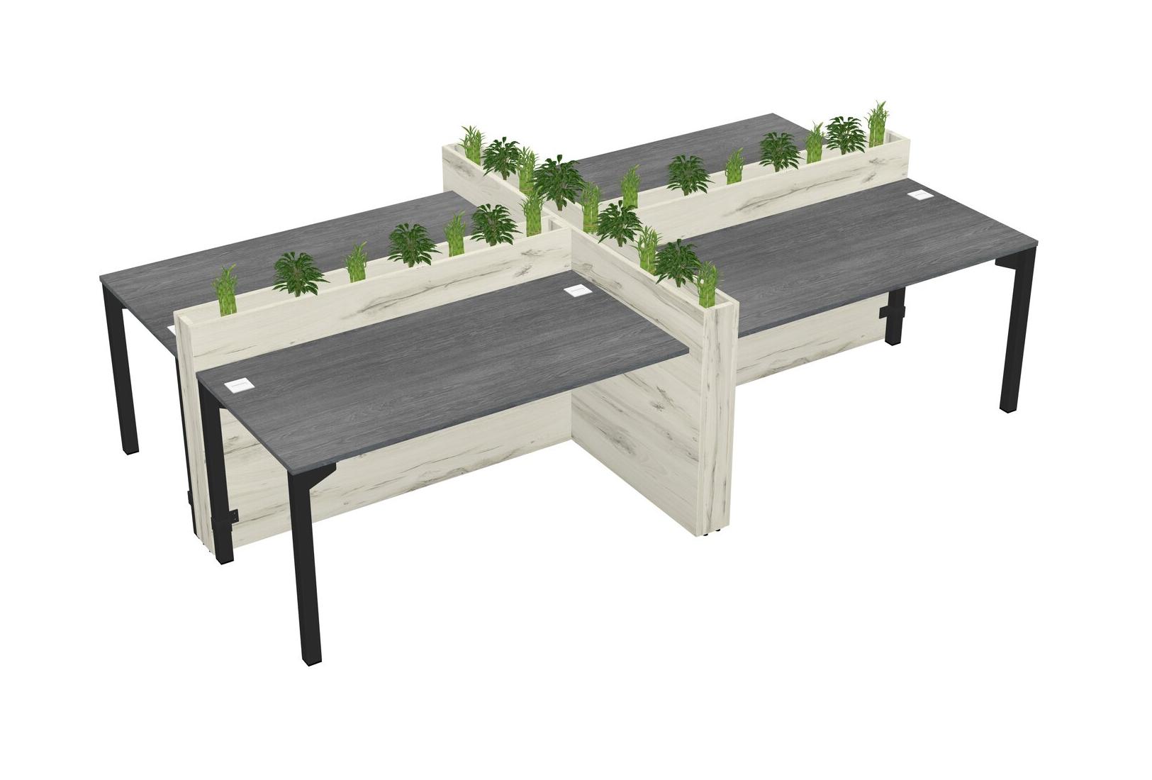 Grey Rectangular Shared Office Desk For 4 Persons Let Nature Help Flourish Your Productivity The Base Comes With An Adjustable Shelf To Provide Space For Pots (Pots & Plants Sold Separately)