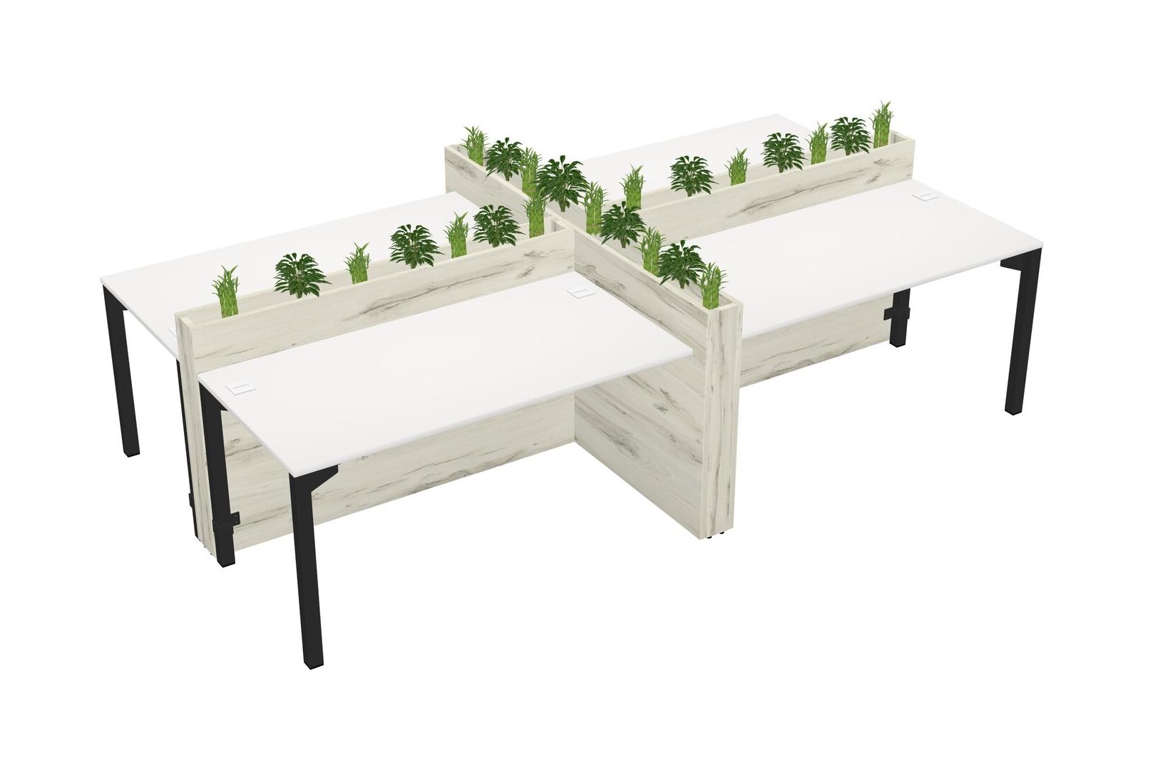 White Rectangular Shared Office Desk For 4 Persons Let Nature Help Flourish Your Productivity The Base Comes With An Adjustable Shelf To Provide Space For Pots (Pots & Plants Sold Separately)