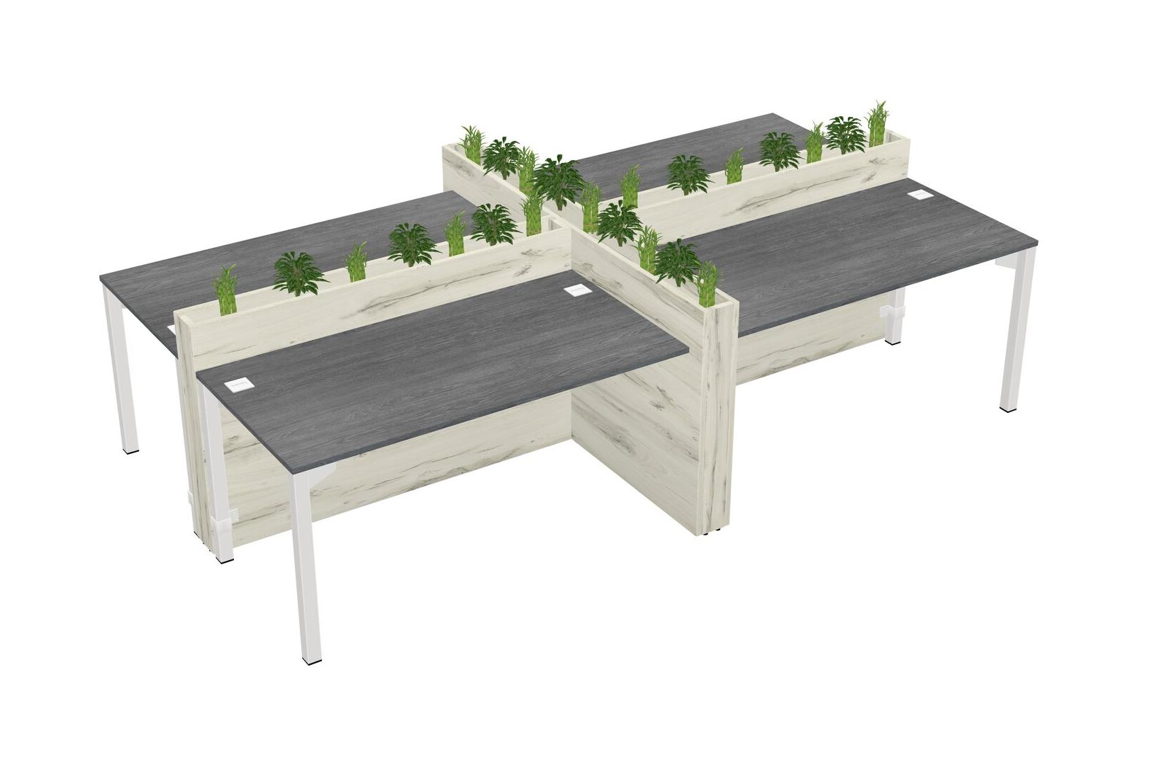 Grey Rectangular Shared Office Desk For 4 Persons Let Nature Help Flourish Your Productivity The Base Comes With An Adjustable Shelf To Provide Space For Pots (Pots & Plants Sold Separately)