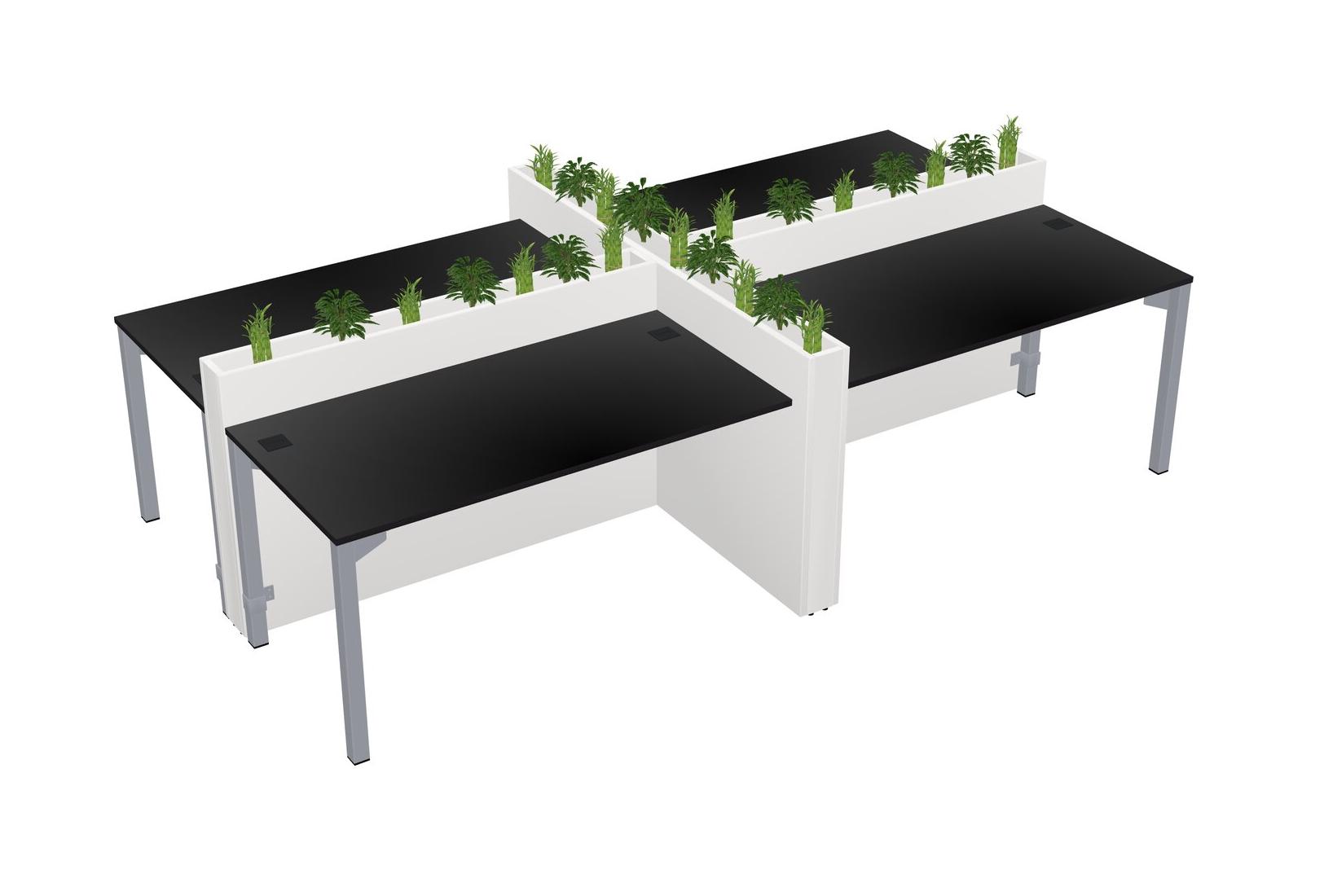 Black Rectangular Shared Office Desk For 4 Persons Let Nature Help Flourish Your Productivity The Base Comes With An Adjustable Shelf To Provide Space For Pots (Pots & Plants Sold Separately)