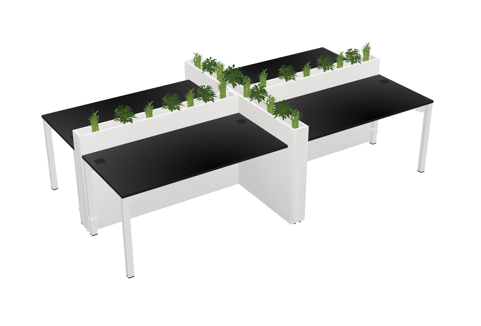 Black Rectangular Shared Office Desk For 4 Persons Let Nature Help Flourish Your Productivity The Base Comes With An Adjustable Shelf To Provide Space For Pots (Pots & Plants Sold Separately)