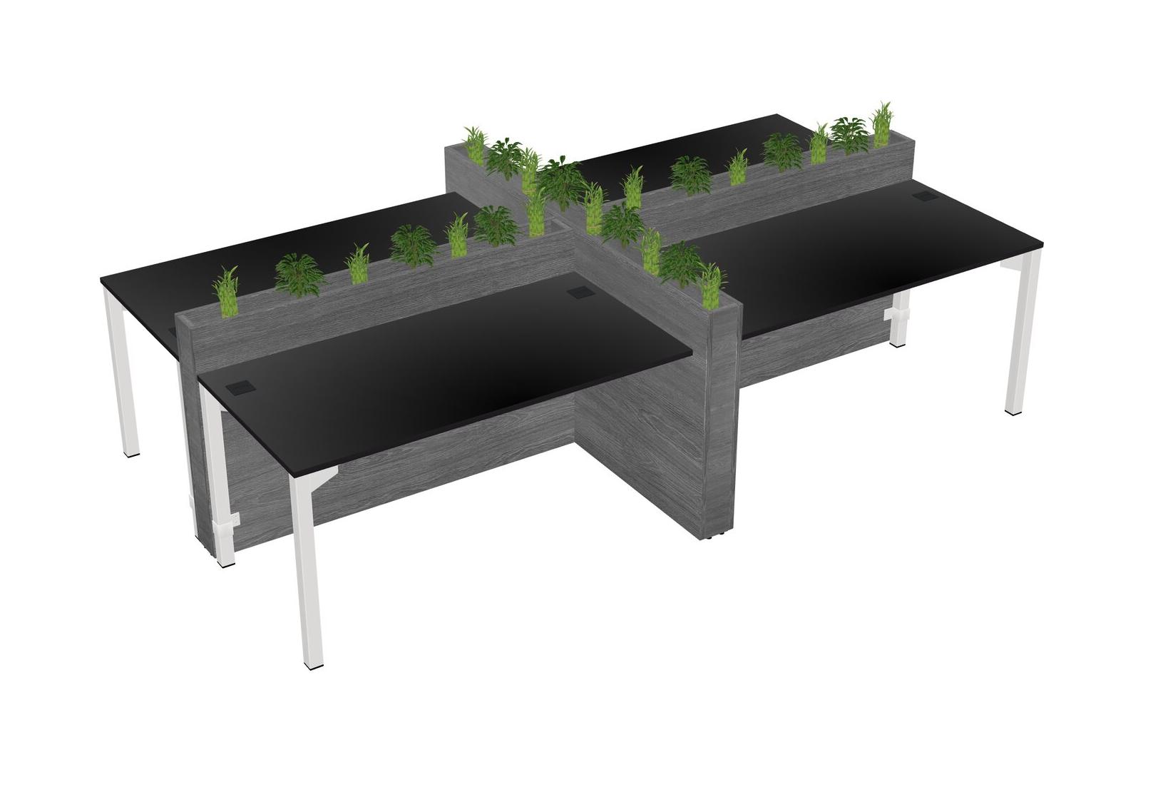 Black Rectangular Shared Office Desk For 4 Persons Let Nature Help Flourish Your Productivity The Base Comes With An Adjustable Shelf To Provide Space For Pots (Pots & Plants Sold Separately)