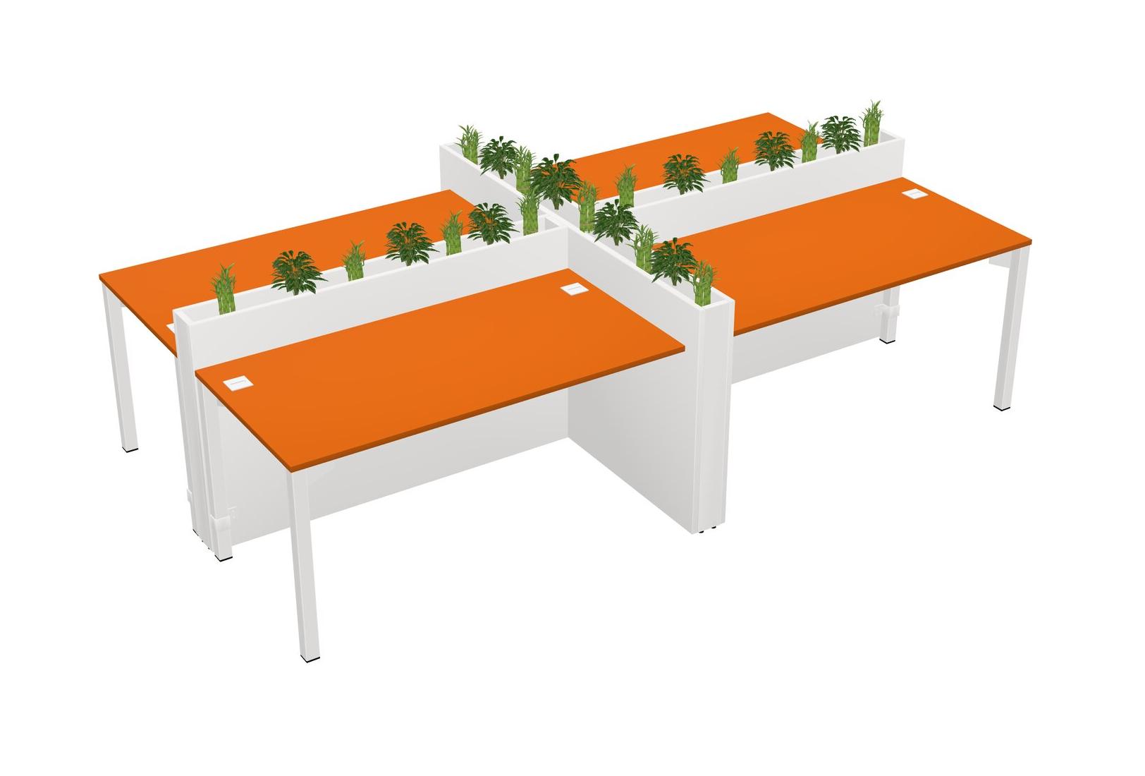 Orange Rectangular Shared Office Desk For 4 Persons Let Nature Help Flourish Your Productivity The Base Comes With An Adjustable Shelf To Provide Space For Pots (Pots & Plants Sold Separately)