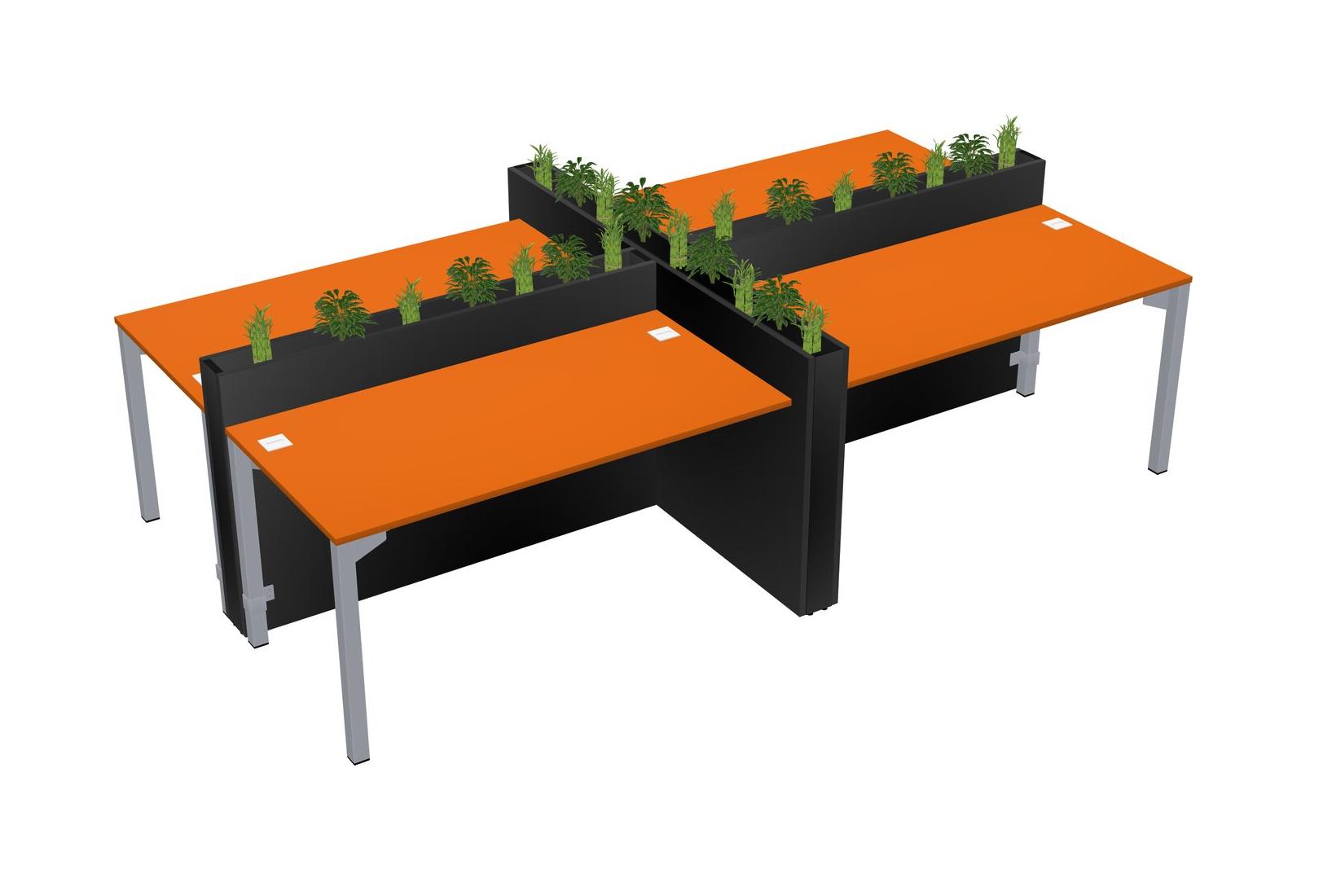 Orange Rectangular Shared Office Desk For 4 Persons Let Nature Help Flourish Your Productivity The Base Comes With An Adjustable Shelf To Provide Space For Pots (Pots & Plants Sold Separately)