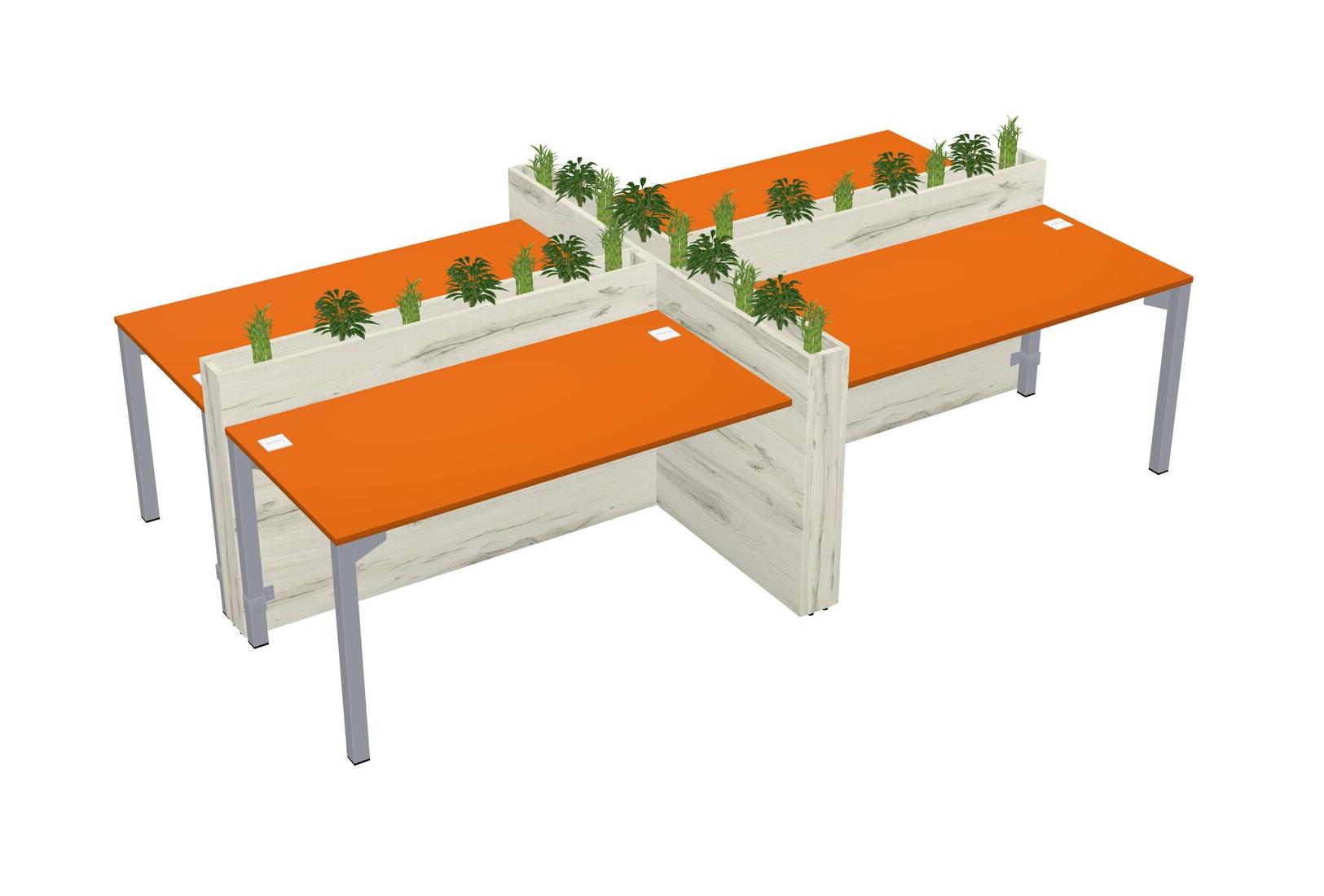 Orange Rectangular Shared Office Desk For 4 Persons Let Nature Help Flourish Your Productivity The Base Comes With An Adjustable Shelf To Provide Space For Pots (Pots & Plants Sold Separately)
