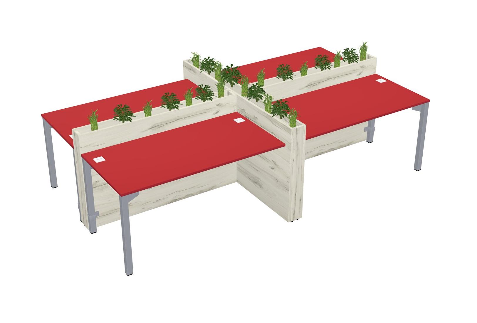 Prism Red Rectangular Shared Office Desk For 4 Persons Let Nature Help Flourish Your Productivity The Base Comes With An Adjustable Shelf To Provide Space For Pots (Pots & Plants Sold Separately)