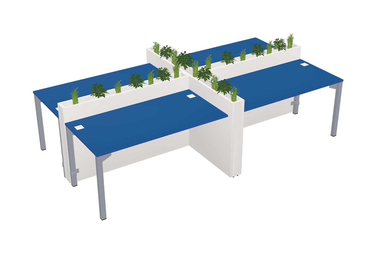 Prism Blue Rectangular Shared Office Desk For 4 Persons Let Nature Help Flourish Your Productivity The Base Comes With An Adjustable Shelf To Provide Space For Pots (Pots & Plants Sold Separately)