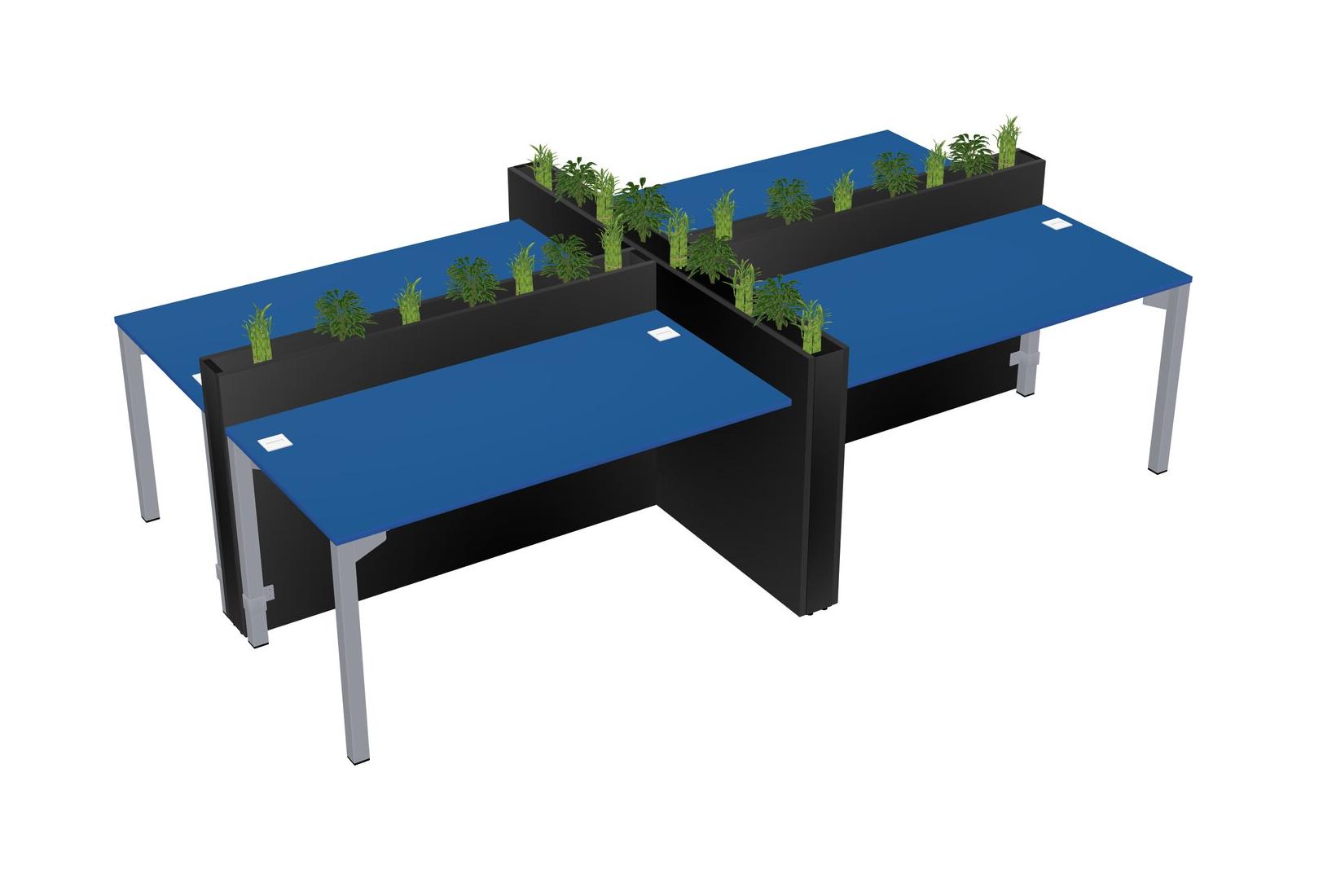 Prism Blue Rectangular Shared Office Desk For 4 Persons Let Nature Help Flourish Your Productivity The Base Comes With An Adjustable Shelf To Provide Space For Pots (Pots & Plants Sold Separately)