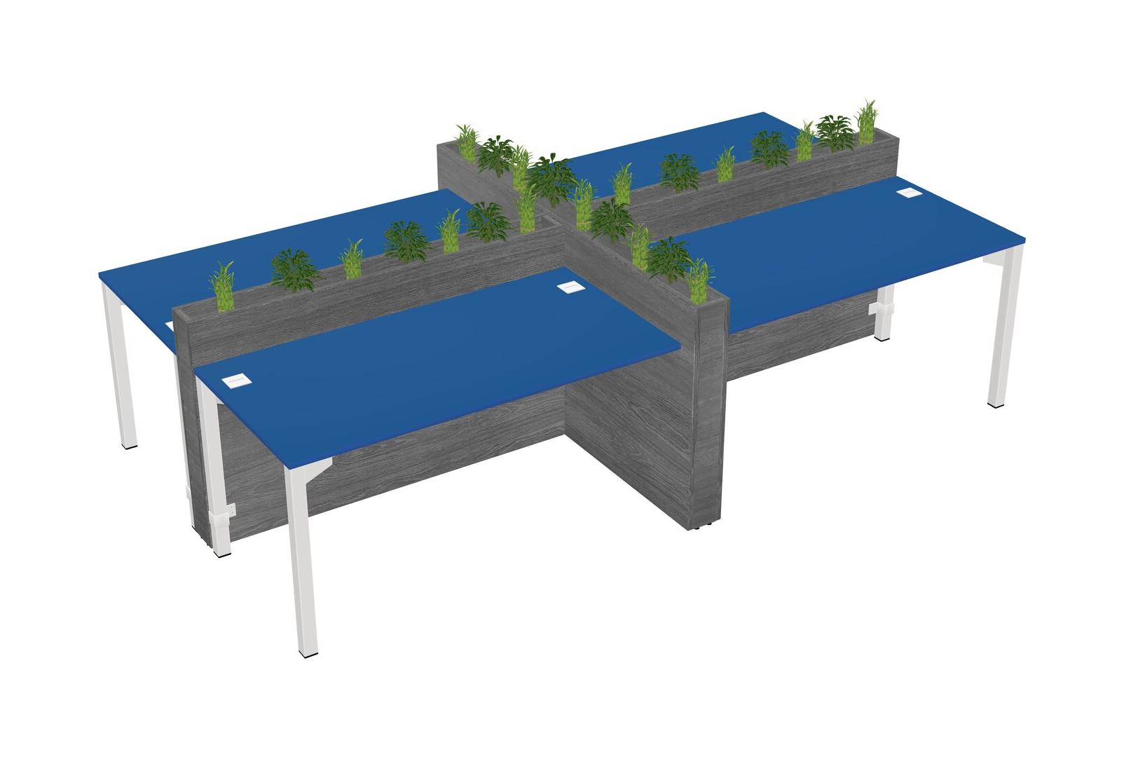 Prism Blue Rectangular Shared Office Desk For 4 Persons Let Nature Help Flourish Your Productivity The Base Comes With An Adjustable Shelf To Provide Space For Pots (Pots & Plants Sold Separately)