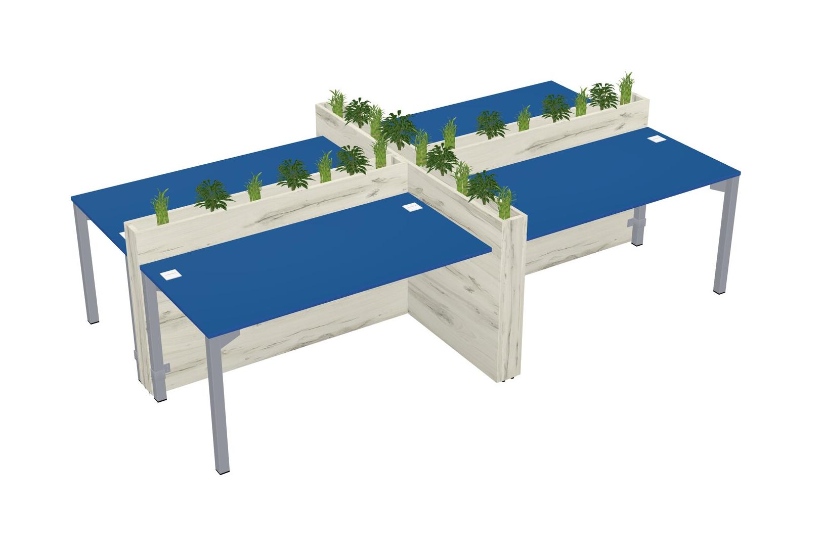 Prism Blue Rectangular Shared Office Desk For 4 Persons Let Nature Help Flourish Your Productivity The Base Comes With An Adjustable Shelf To Provide Space For Pots (Pots & Plants Sold Separately)