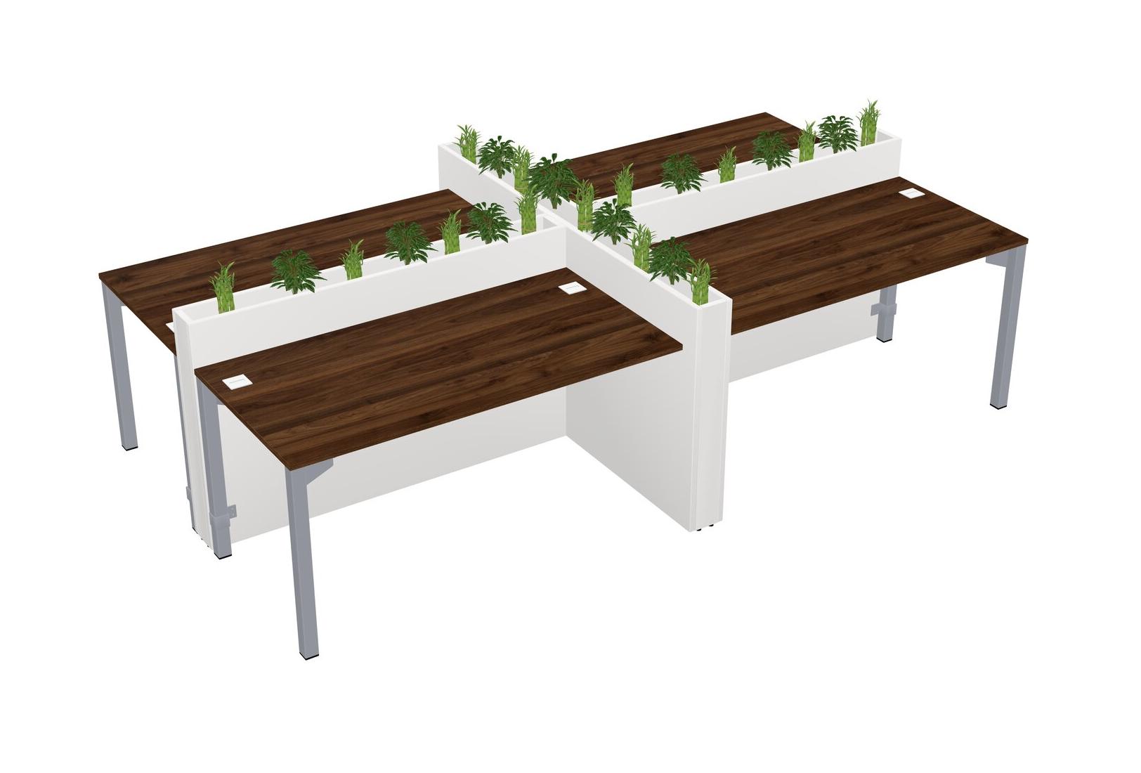 Columbia Walnut Rectangular Shared Office Desk For 4 Persons Let Nature Help Flourish Your Productivity The Base Comes With An Adjustable Shelf To Provide Space For Pots (Pots & Plants Sold Separately)