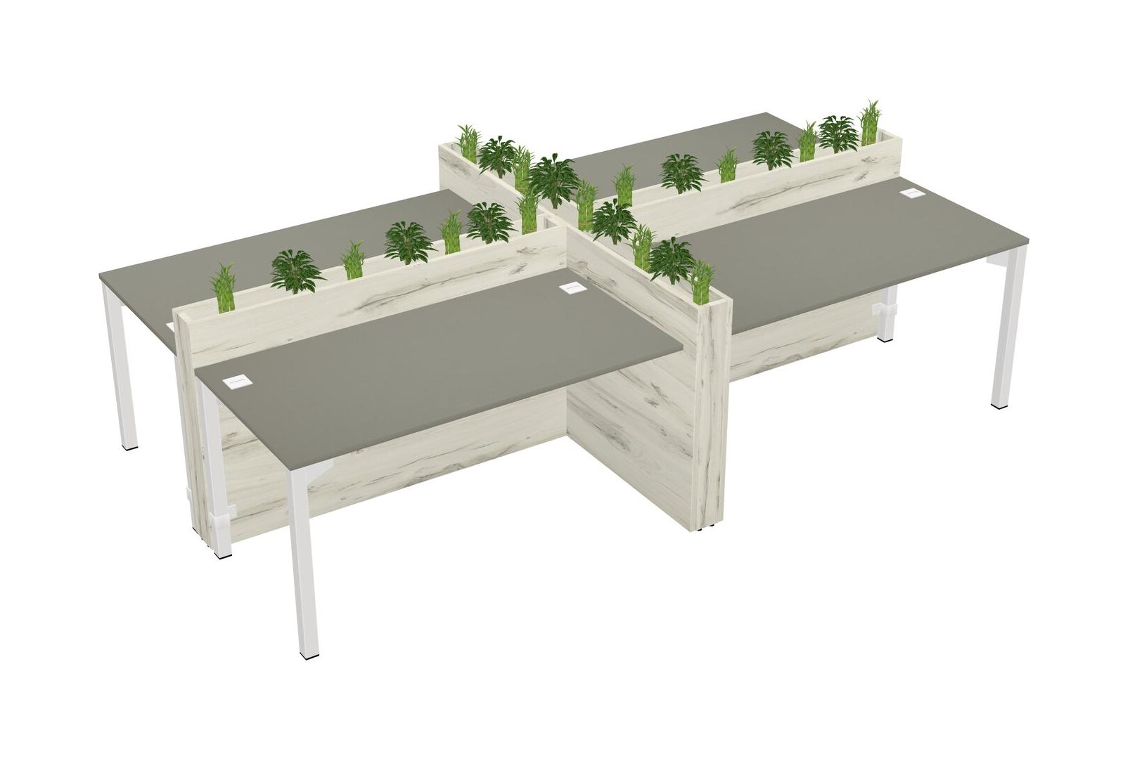 Grey Shadows Rectangular Shared Office Desk For 4 Persons Let Nature Help Flourish Your Productivity The Base Comes With An Adjustable Shelf To Provide Space For Pots (Pots & Plants Sold Separately)